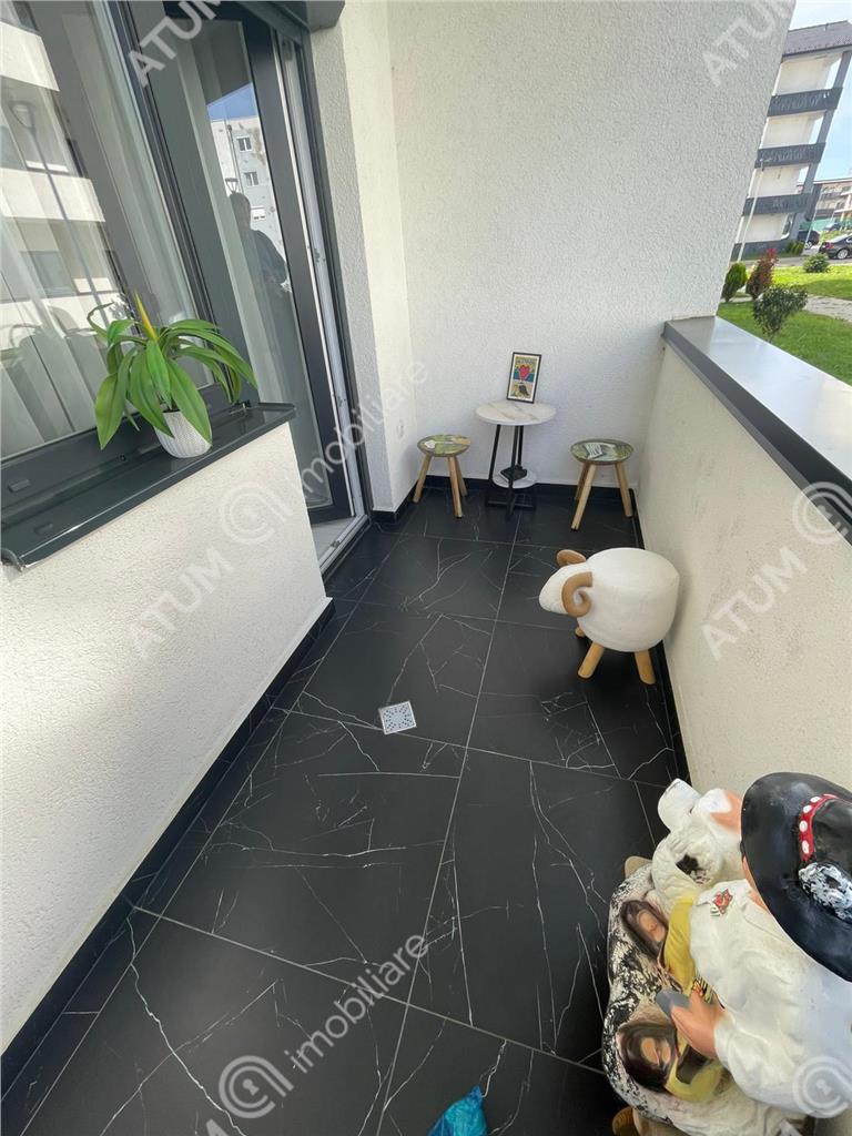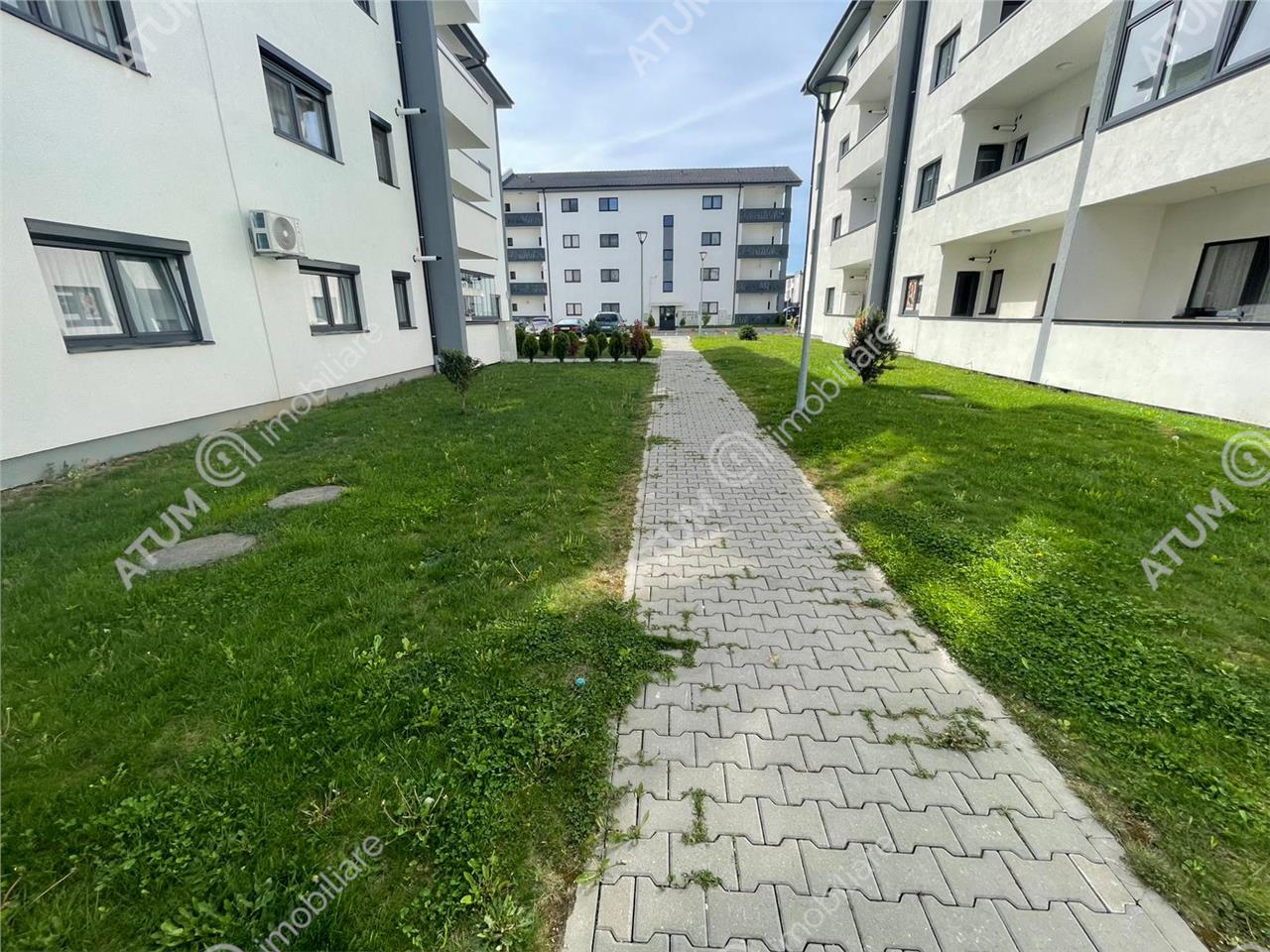 Imobilul este deservit de mult spatiu verde si are loc de parcare propriu. Amplasarea acestuia este intr-o zona linistita, bine deservita de magazine alimentare si este la mica distanta de magazine universale sau de complexul comercial Shopping City Sibiu.