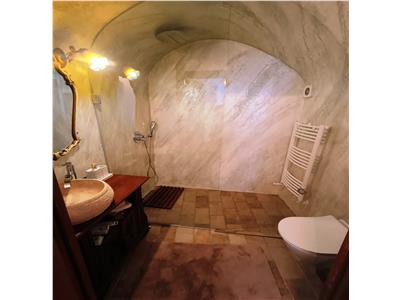 Proprietatea prezinta o atmosfera burgheza fiind renovata in totalitate, printre dotari si imbunatatiri amintim de: instalatii electrice si sanitare noi, pereti refacuti in totalitate de la caramida (tencuiala, tinci si vopsea lavabila), usi din lemn la interior, geamuri termopan cu tamplarie din lemn prevazute cu obloane exterioare, parchet reconditionat din lemn masiv, gresie, faianta, centrala termica proprie pe curent, boiler, calorifere, mobilier de calitate in toate incaperile si electrocasnice noi (frigider, masina de spalat rufe, cuptor cu microunde, masina de spalat vase, plita pe inductie, cuptor si hota electrice).
