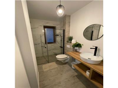 Dotarile apartamentului sunt de calitate si asigura tot confortul necesar, din care amintim: usa de acces metal, usi interioare din lemn cu insertii de sticla, parchet rezistent la apa, tamplarie PVC cu geam tripan, centrala termica proprie mascata, calorifere din otel, termostat inteligent, cabina de dus si geam de aerisire in baie.
