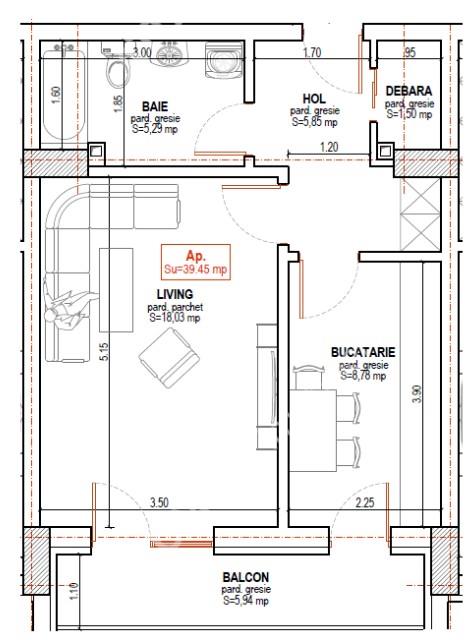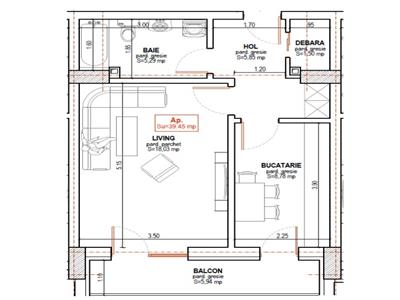 Locuinta are suprafata utila de 40 mp si este compusa din hol de acces generos dotat cu cuier si pantofar, debara, bucatarie complet mobilata si utilata cu acces spre balconul de 6 mp open space cu livingul, baie dotata cu cabina de dus si dormitor.