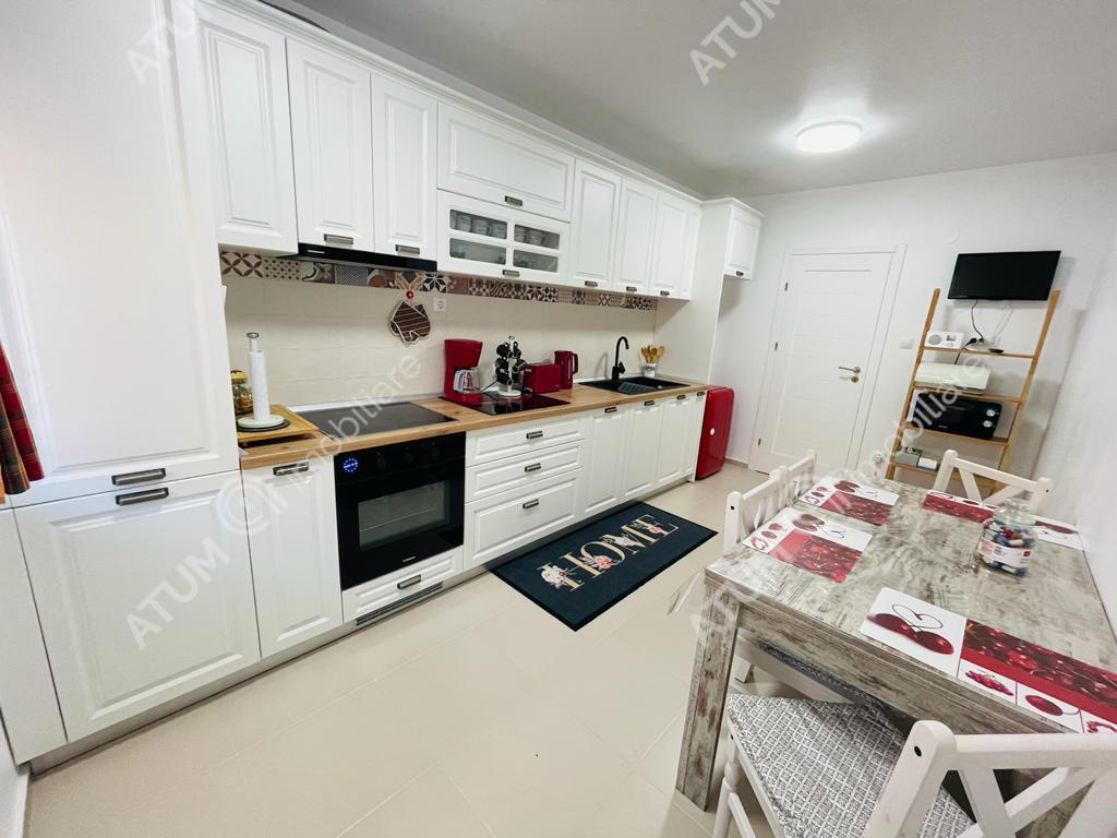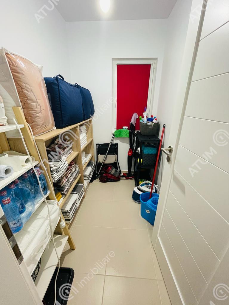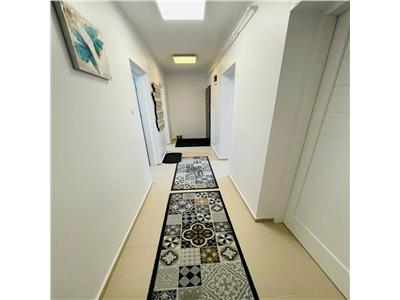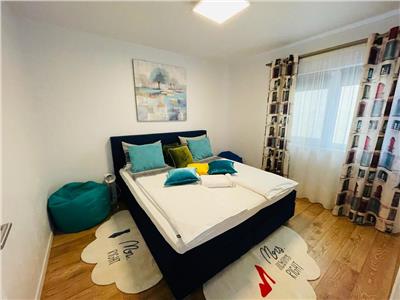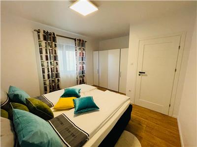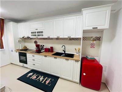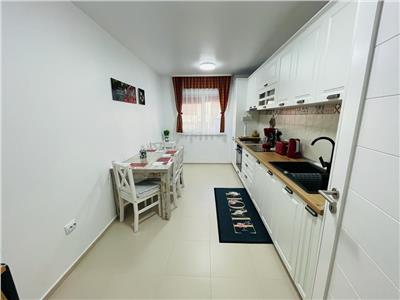 Acesta se inchiriaza complet mobilat si utilat si dispune in bucatarie de electrocaznice noi ( plita electrica, hota, cuptor electric, cuptor cu microunde, masina de spalat haine, frigider ) si mobilier la comanda cu sistem soft cloze, masina de spalat rufe, TV, mobilier de dormitor si living, usi de interior din lemn, parchet laminat, usa metalica de acces securizata, tamplarie pvc cu geam termopan, contorizari separate pentru gaz, curent si apa, contracte pentru cablu TV si internet.