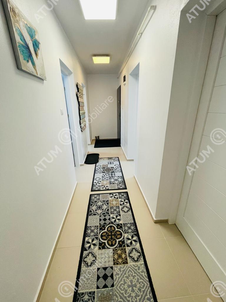 Apartament cu 2 camere decomandate, complet mobilat si utilat de inchiriat in Selimbar, zona Shopping City Sibiu, pozitionat la parterul inalt al unui imobil cu doar 2 etaje ce dispune de parcare proprie, curte interioara si izolatie exterioara.