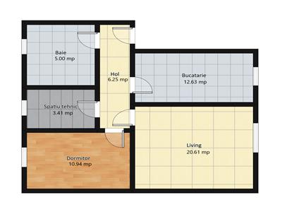 Suprafata utila este de 60 mp si este compusa din living, bucatarie separata complet mobilata si utilata, dormitor cu spatiu pentru dressing, hol cu spatiu pentru pantofar si cuier, baie cu geam de aerisire si dressing.