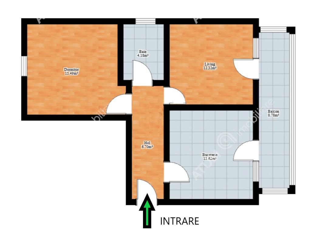 Apartamentul este situat la etajul intermediar 2 al unui imobil cu regimul de inaltime P+4 Etaje, izolat la exterior, are suprafata utila de 50 de mp si este compus din hol acces dotat cu pantofar si cuier, bucatarie complet mobilata si utilata cu electrocascnice noi, baie dotata cu cada si geam de aerisire, living, dormitor si bucatarie. Separat de suprafata utila acesta mai detine un balcon de 10 mp in care accesul se face din living si bucatarie.
