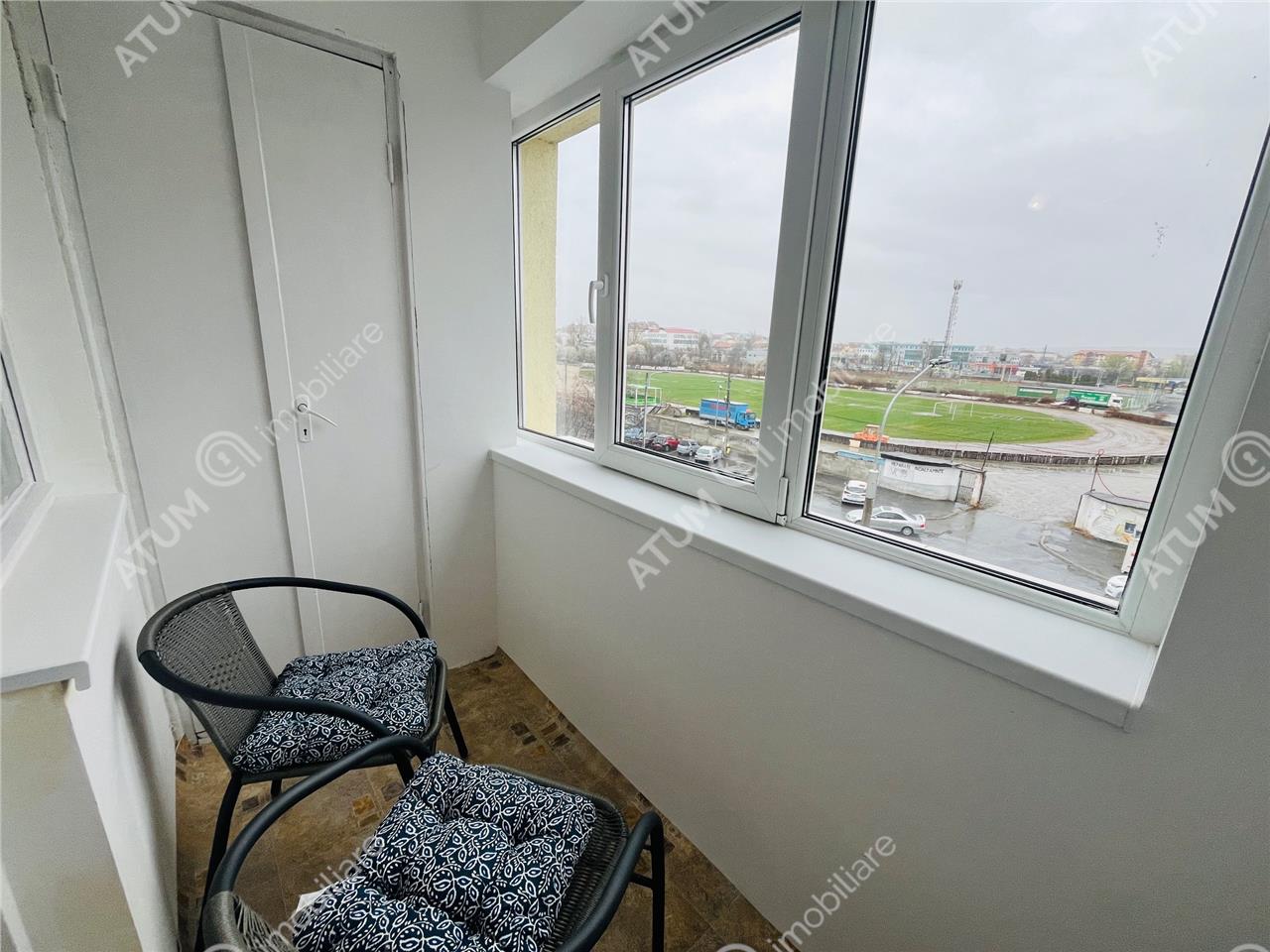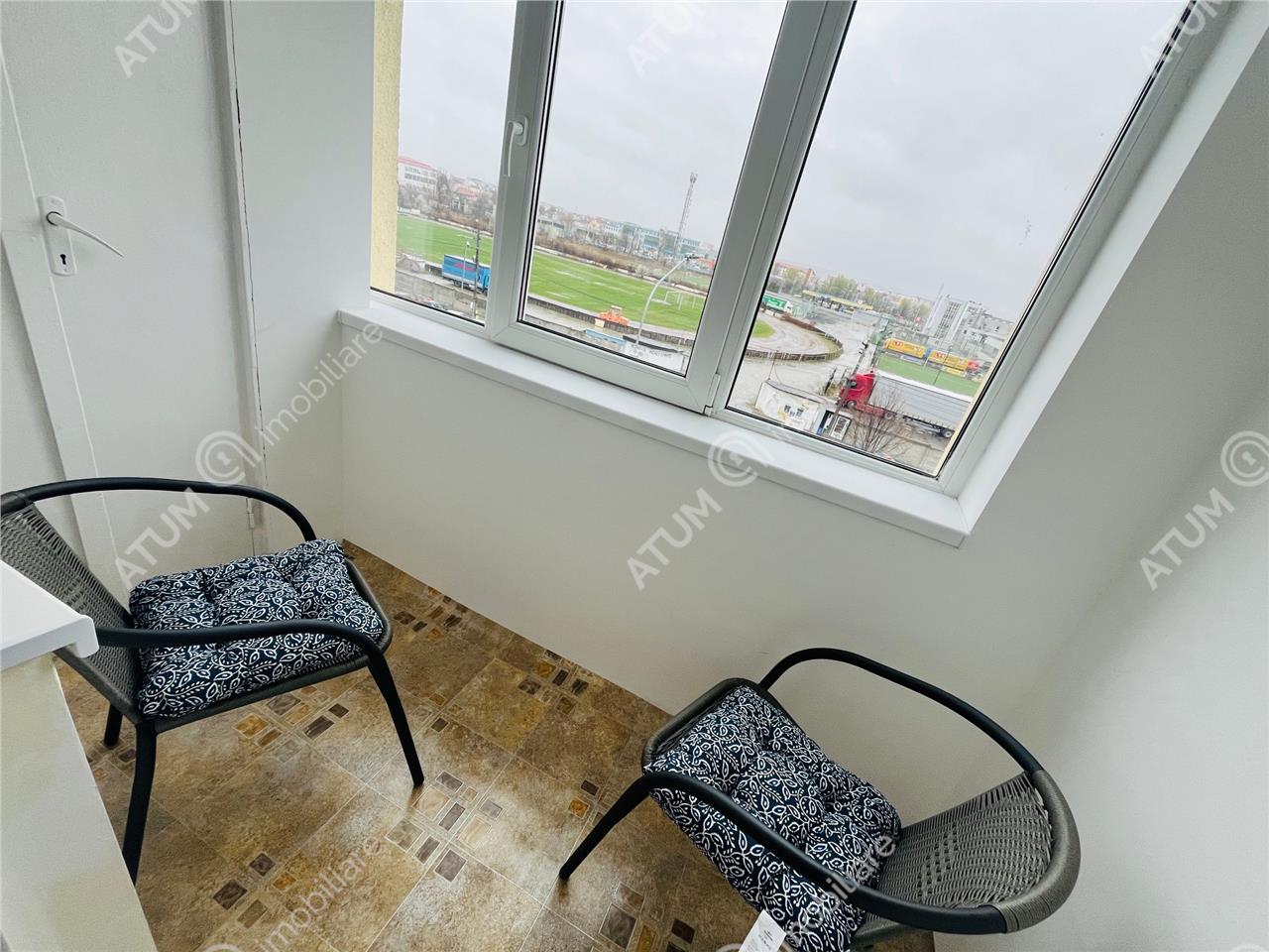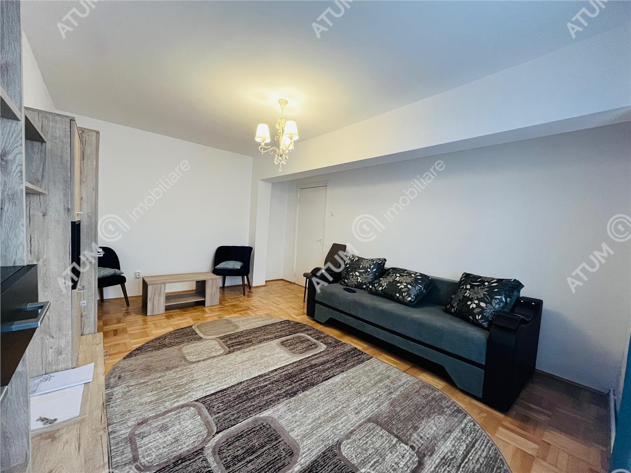 De inchiriat apartament complet renovat de 2 camere decomandate cu balcon inchis si pivnita de 7,5 mp, orientare Vestica, pozitionat la etajul intermediar 3, in zona Strand 1 din Sibiu.