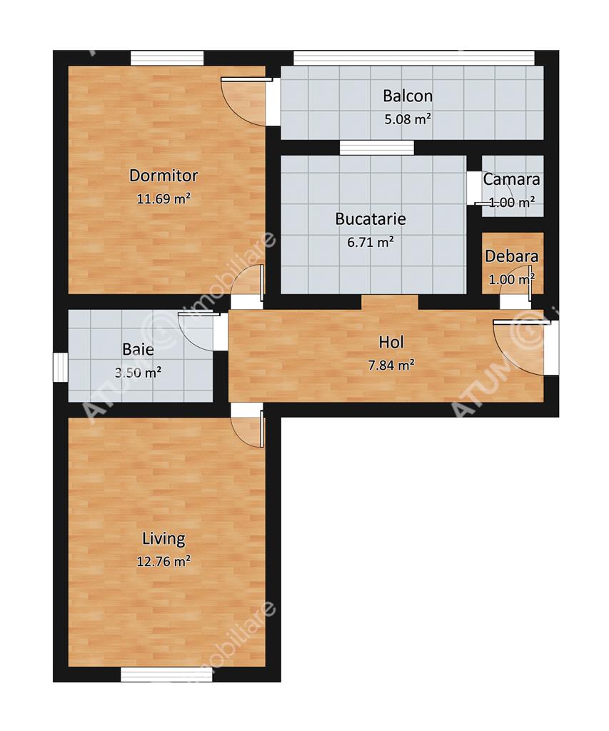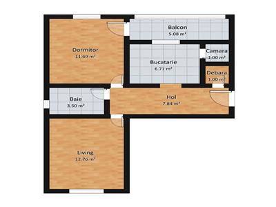 Locuinta in suprafata de 50 mp utili, dispune de o compartimentare practica si face din acest apartamnet o locuinta luminoasa si aerisita. Apartamentul este compus din camera de zi, dormitorul cu acces in balconul tip logie inchis in tamplarie PVC cu geam termopan, unde se afla si un spatiu destinat depozitarii, bucataria separata, baia dotata cu dus si holul generos, care este dotat cu zona de primire amenajata cu pantofar si cuier.