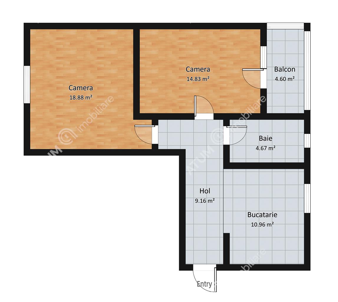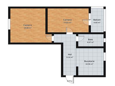 Aceasta proprietate dispune de o compartimentare foarte bine gandita, la intrare se afla un hol deschis cu bucataria generoasa, in continuare se afla 2 camere decomandate (una din ele cu acces pe balcon) si o baie prevazuta cu aerisire naturala.