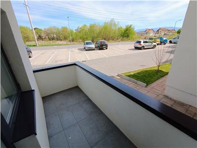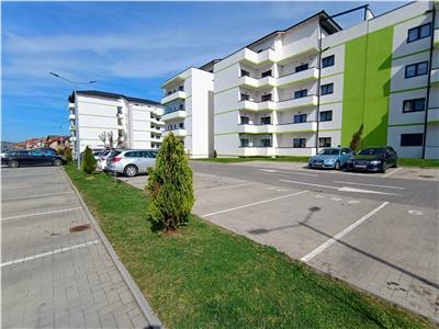 Locuinta insumeaza 56 mp utili, beneficiaza de 1 loc privat pentru parcare si este situata la parterul inalt al unui imobil nou construit.