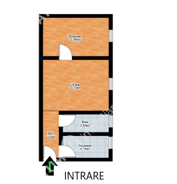 Locuinta are suprafata utila de 42 mp si este compusa din hol de acces dotat cu pantofar si cuier, bucatarie complet mobilata si utilata, baie dotata cu geam de aerisire si cada, living spatios si dormitor.
