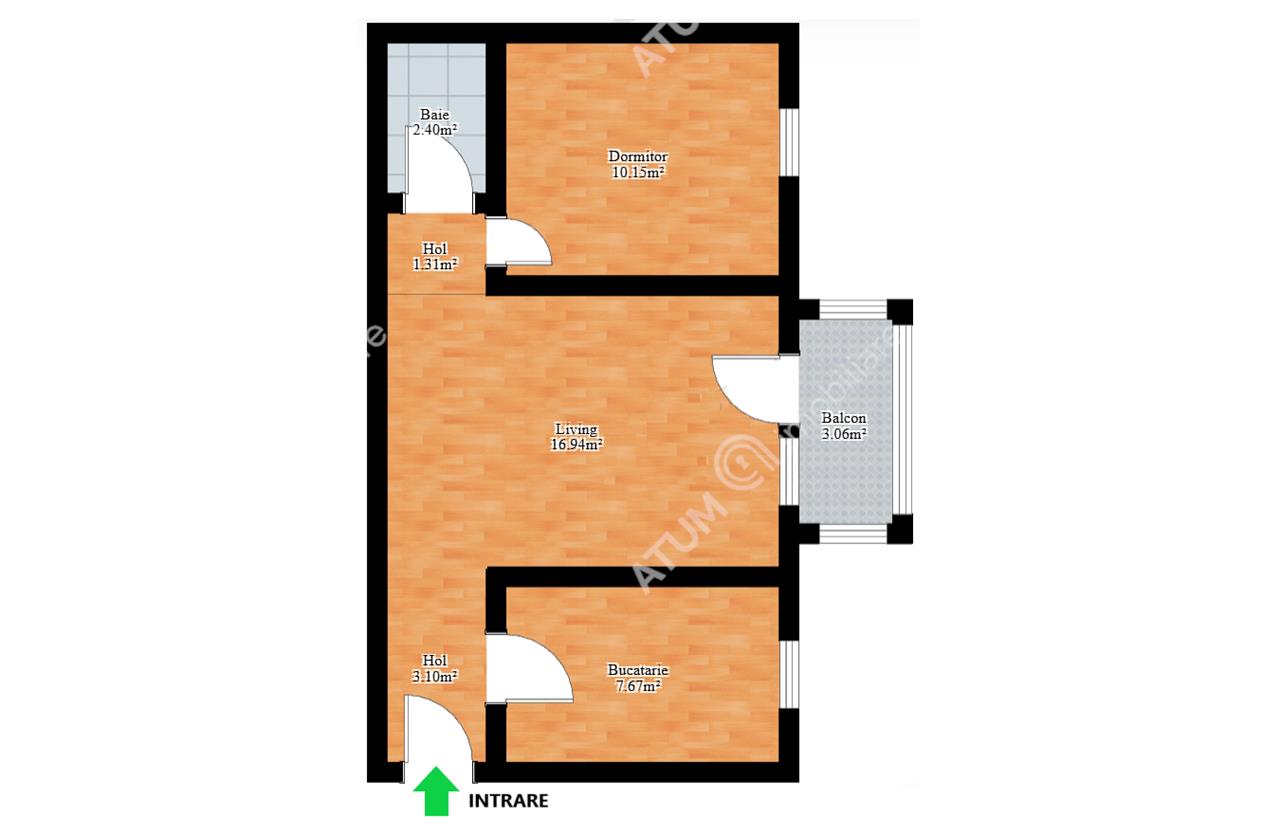 Locuinta are suprafata utila de 40 mp si este compus din hol acces, bucatarie, baie dotata cu cada, living si dormitor. Separat de suprafata utila mai detine un balcon deschis de 3 mp si o pivnita la subsol de 7 mp.