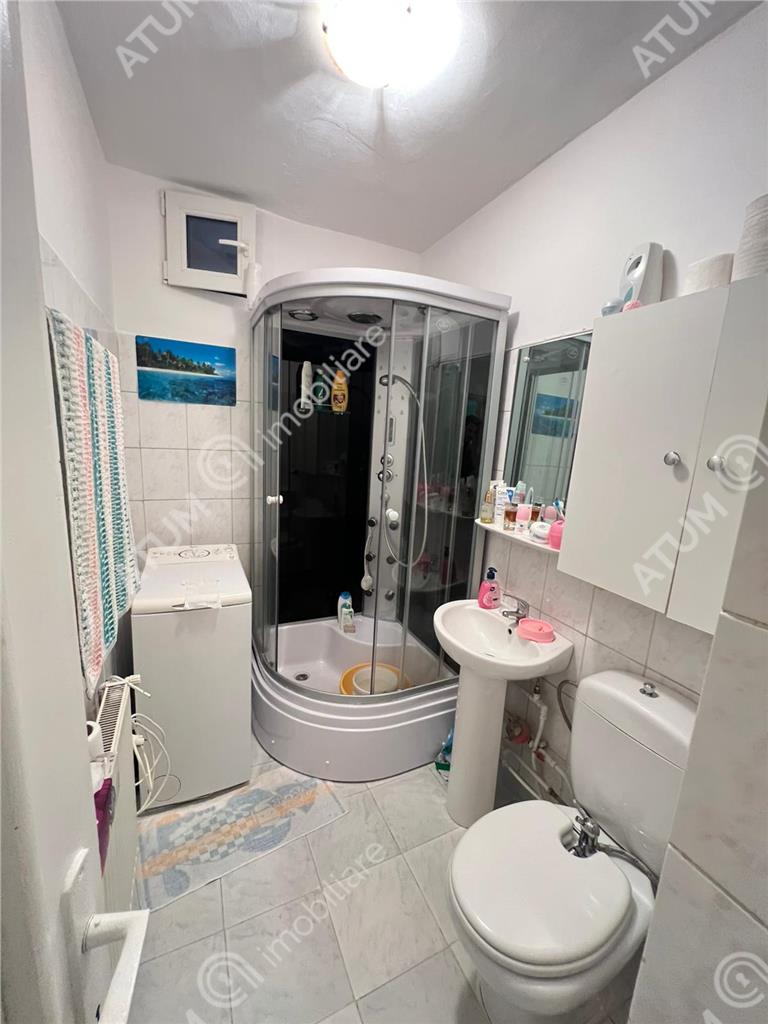 Locuinta beneficiaza de dotari precum centrala termica proprie, calorifere, gresie, faianta si parchet din lemn masiv, usa de acces din metal, baie cu geam de aerisire si cabina de dus.