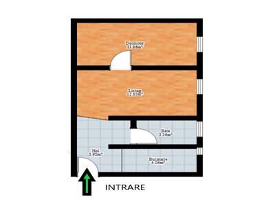 Locuinta se afla la ultimul etaj, are suprafata utila de 37 mp si este compus din hol acces, bucatarie complet mobilata si utilata, baie dotata cu cada si geam de aerisire, living si dormitor.