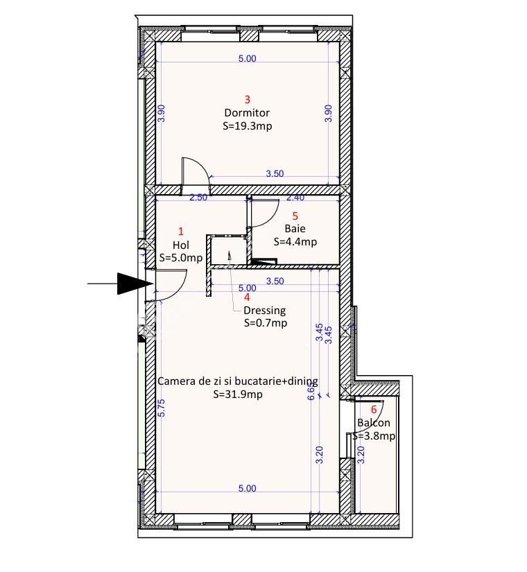 -Usa de metal anti-efractie la intrarea in apartament placata cu MDF;