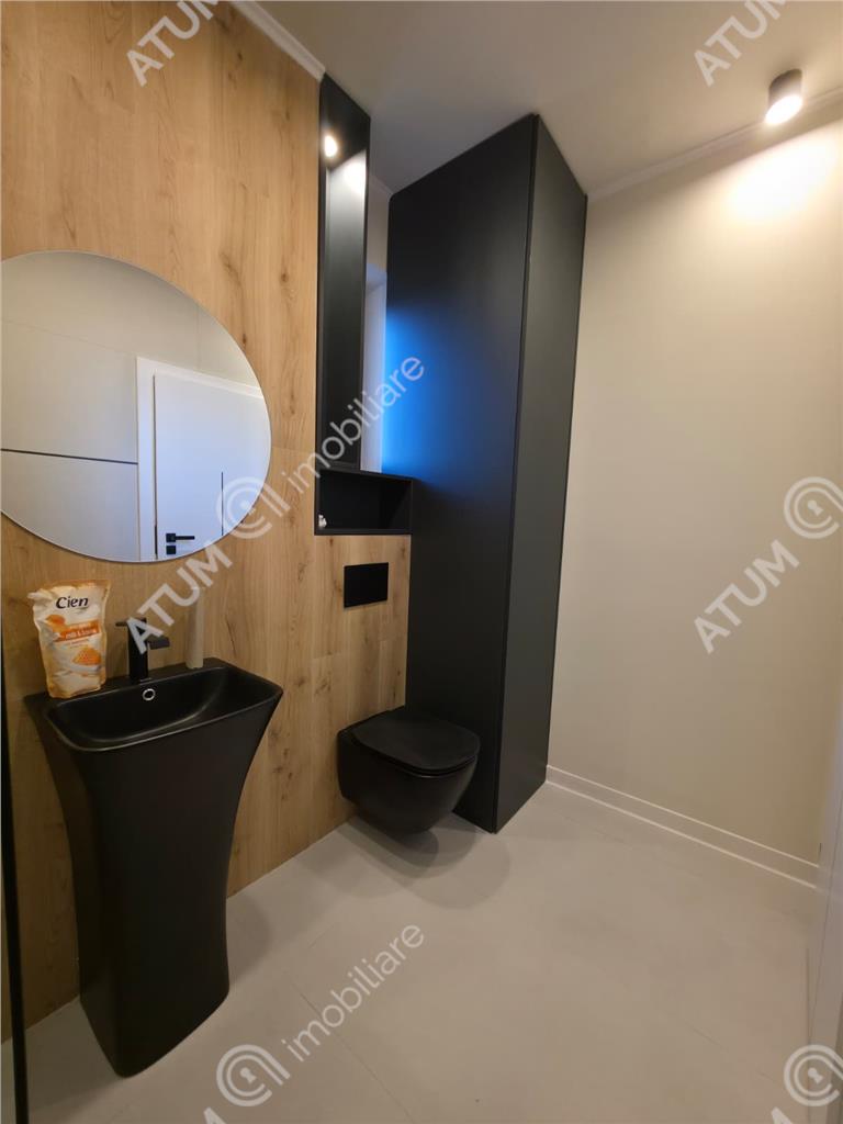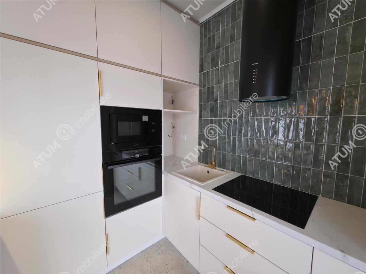 Locuinta se preda complet mobilata si utila cu mobilier de bucatarie realizat pe comanda cu electrocasnice incorporate ( cuptor electric, plita electrica, hota, cuptor cu microunde, masina de spalat vase si masina de spalat rufe ), mobilierul de living care include canapea si mobilierul specific cu multiple spatii de depozitare, dormitorul complet amenajat cu pat matrimonial, noptiere si dressing iar baia amenajata ca atare cu obiecte sanitare si mobilierul specific.