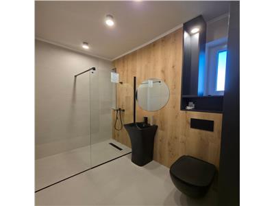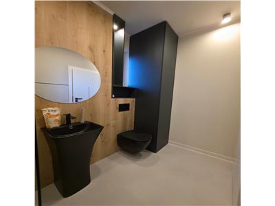 Apartamentul beneficiaza de dotari si finisaje moderne precum sunt: centrala proprie marca Bosch in condensatie si incalzire in pardoseala, tamplarie PVC marca Salamander cu 7 camere si 3 foi de sticla LOW-E, usa metalica anti efractie de acces in apartament, pardoseala in camera de zi dormitor este placata cu placi LVT pentru o conductibilitate crescuta a caldurii, pardoseala dormitorului dispune de mocheta iar in baie este gresie, peretii baii sunt placati cu faianta iar contrablatul din bucatarie este realizat din faianta tip solzi, obiecte sanitare incastrate, intrerupatoare touch, prize marca Schneider, usi interioare marca Porta Doors, corpuri de iluminat moderne, lumini ambientale incastrate in scafele dedicate perdelelor si draperiilor, zugraveli realizate in culori calde cu vopsea lavabila alba cat si note moderne de crem cat si placari a peretilor cu riflaje de lemn.