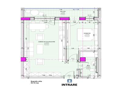 Apartamentul dispune de o suprafata utila de 51.16 mp si este compartimentat eficient in camera de zi cu bucatarie open-space in suprafata de 31.32 mp, un dormitor matrimonial de 14.10 mp ce permite amenajarea unui dressing generos, o baie de 5.74 mp si un hol generos cu spatiu pentru pantofar si cuier. Separat de suprafata utila, apartamentul dispune si de un balcon tip loggie in suprafata de 6.60 mp in care accesul se face atat din dormitor cat si din bucatarie.