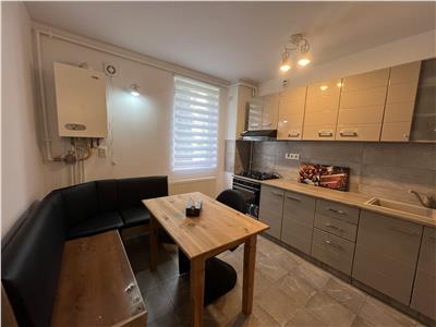 Apartamentul are disponibilitate imediata si se preda cu mobilier de bucatarie realizat pe comanda cu electrocasnice incastrate ( plita pe gaz, cuptor electric, hota si frigider ), loc de luat masa amenajat in bucatarie, dormitorul complet echipat si baia amenajata ca atare.