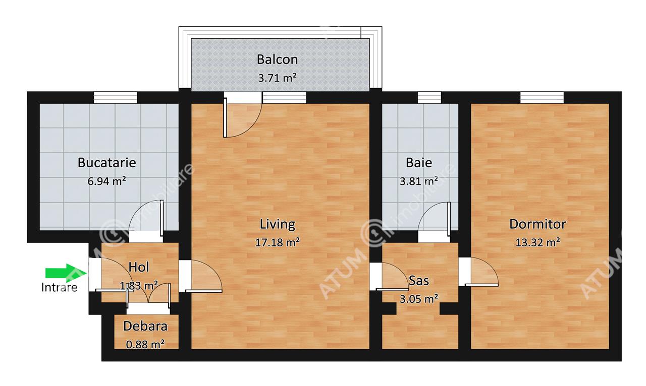 Locuinta are o suprafata utila de 47 mp, cumpusa din living, dormitor, hol la intrare si debara, sas cu spatiu pentru dressing, baie dotata cu geam de aerisire, bucatarie. Separat se mai adauga un balcon de 4 mp.