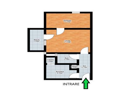 Locuinta se afla la etajul 3, are suprafata utila de 45 mp si este compusa din hol acces de 3.90 mp, bucatarie de 6.80 mp, camara de 1.50 mp, debara de 1 mp, baie de 2.60 mp , living spatios si luminos de 17 mp si dormitor de 12.20 mp. Separat de suprafata utila este si un balcon deschis de 5 mp.