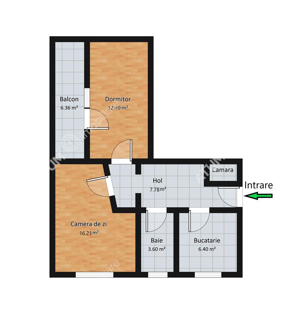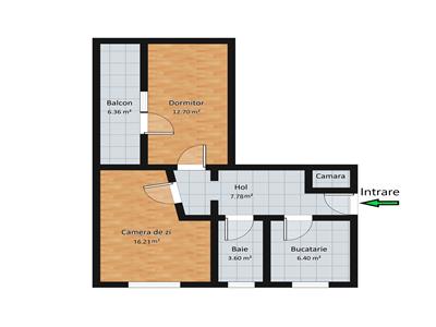 Locuinta are o compartimentare practica si eficienta fiind compusa dintr-un hol generos prin intermediul caruia se face accesul in fiecare incapere si unde se afla si o camara si este amenajata zona de primire prevazuta cu pantofar si cuier, camera de zi dotata cu aer conditionat, dormitorul spatios, bucatarie separata cu loc de luat masa si baia dotata cu geam de aerisire si cada, toate acestea insumand 47 mp utili.