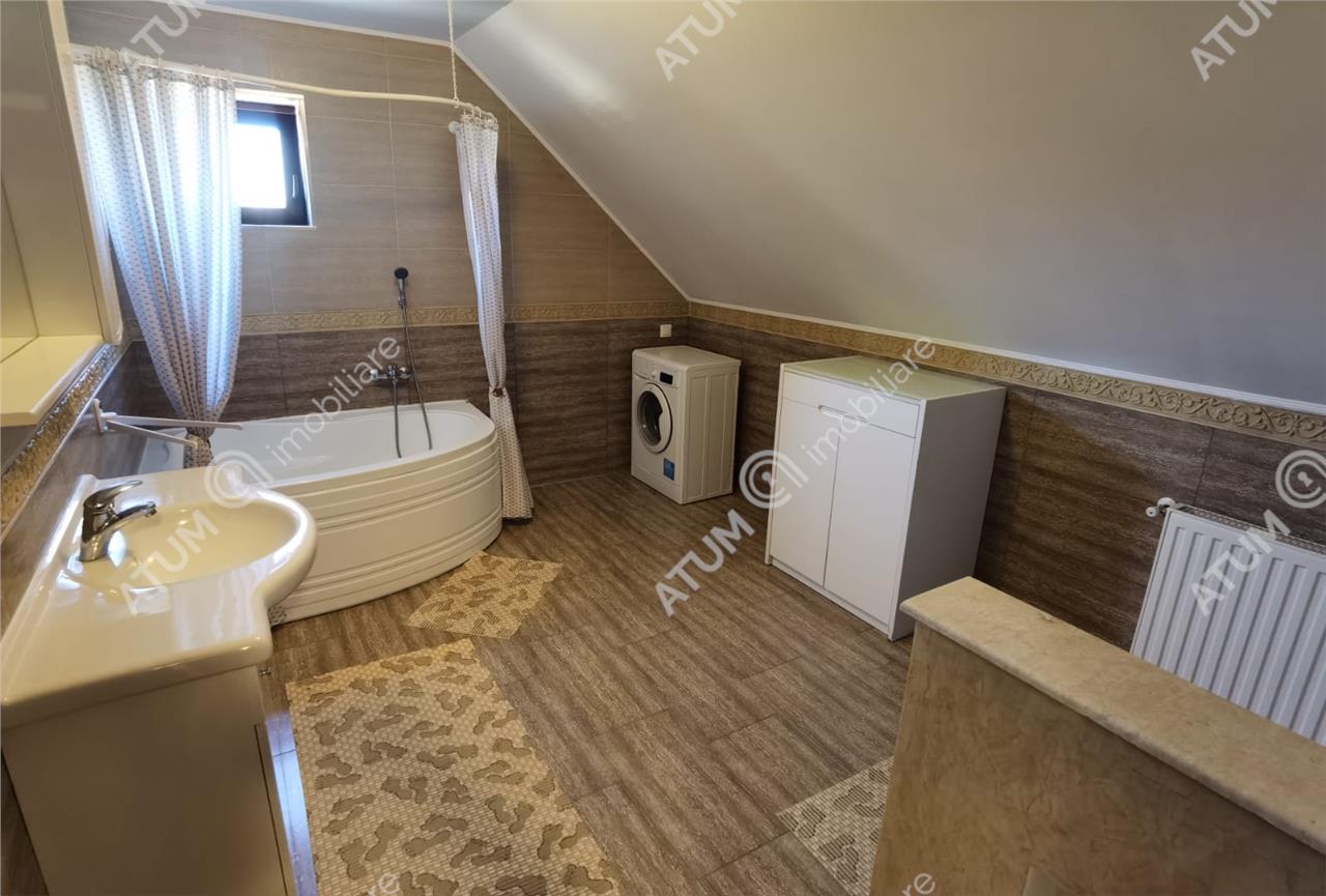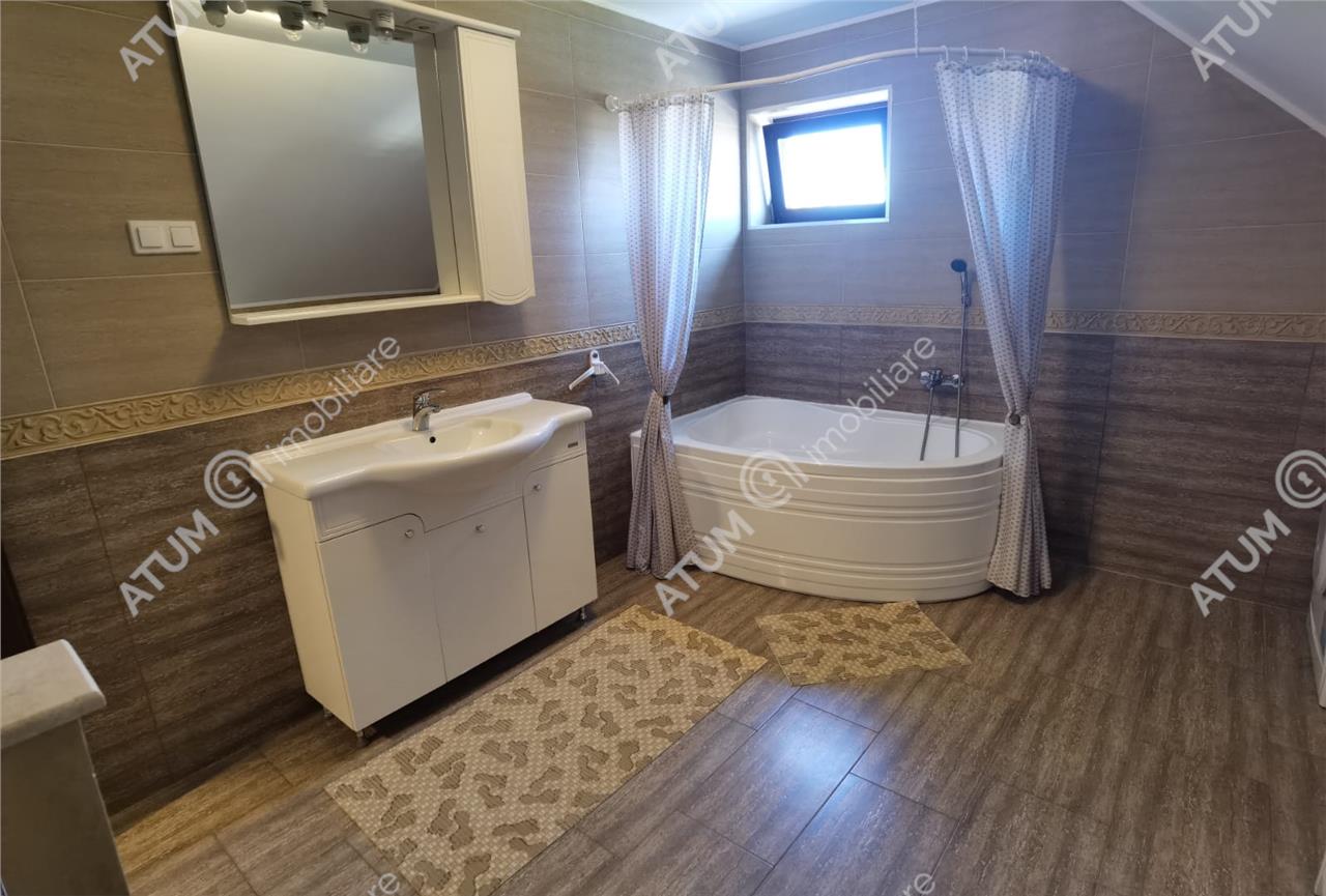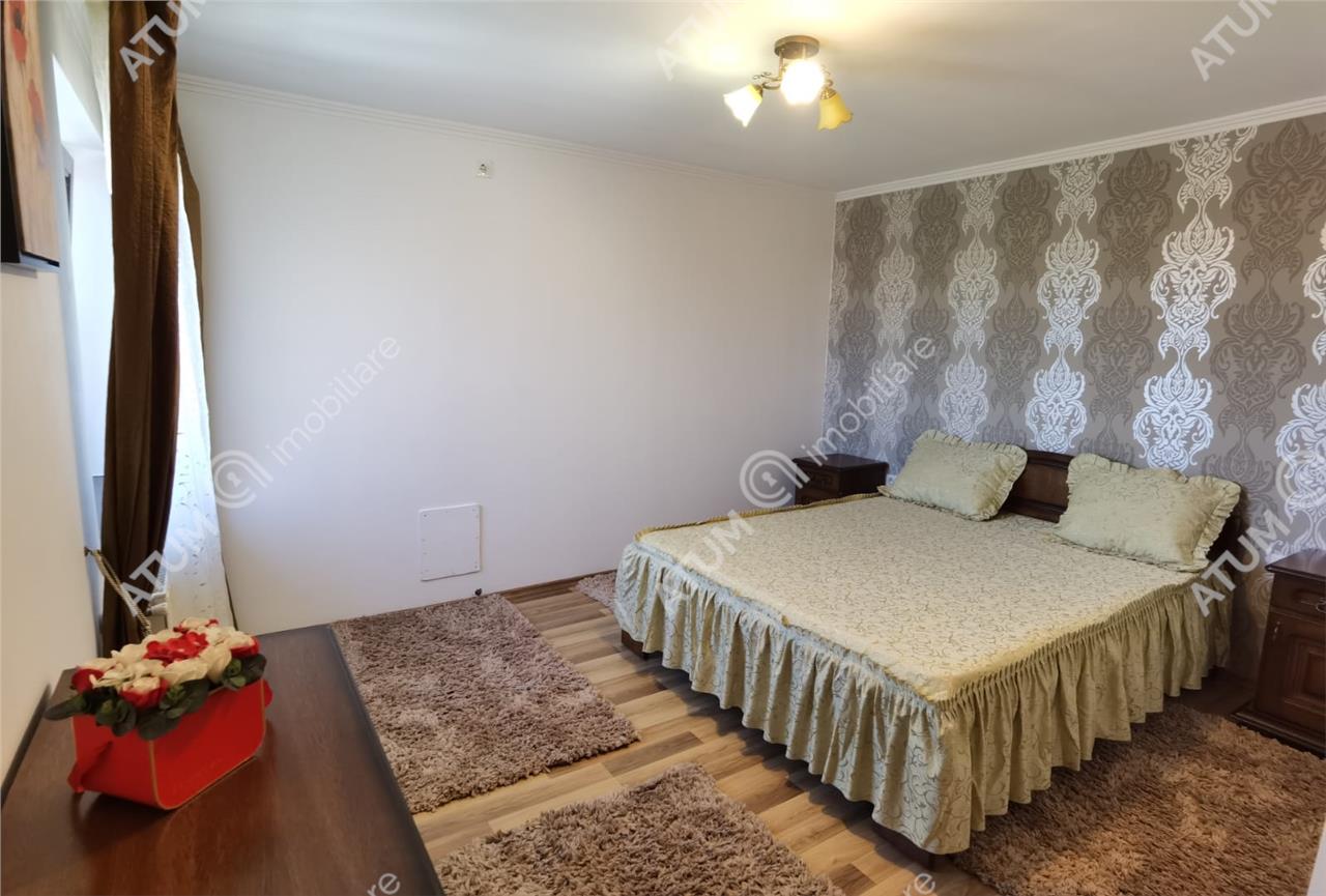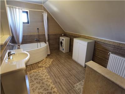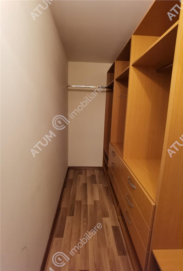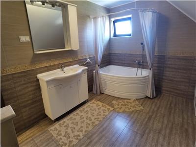 Locuinta se inchiriaza complet mobilata si utilata cu mobilier de bucatarie din MDF cu electrocasnice incastrate cum ar fi: cuptor electric, plita gaz, frigider, cuptor cu microunde, camera de zi amenajata cu canapea si mobilier specific cu multiple spatii de depozitare si TV, baia amenajata ca atare si dormitoarele echipat corespunzator.