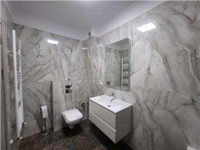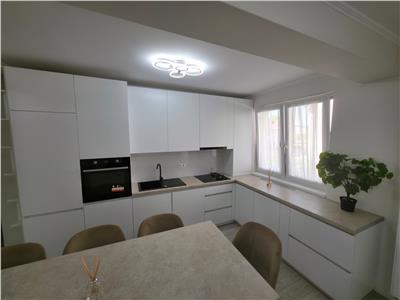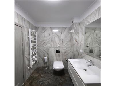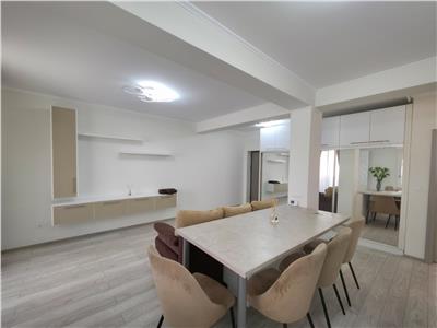 Apartamentul se preda complet mobilat si utilat, amenajat intr-un stil modern care include: mobilier de bucatarie realizat pe comanda cu electrcasnice incastrate (plita hibrid inductie+gaz, cuptor electric, hota, frigider, masina de spalat vaze), camera de zi amenajata cu canapea extensibila, dormitoarele mobilate complet, baile amenajate ca atare si holul amenajat cu pantofar si cuier.