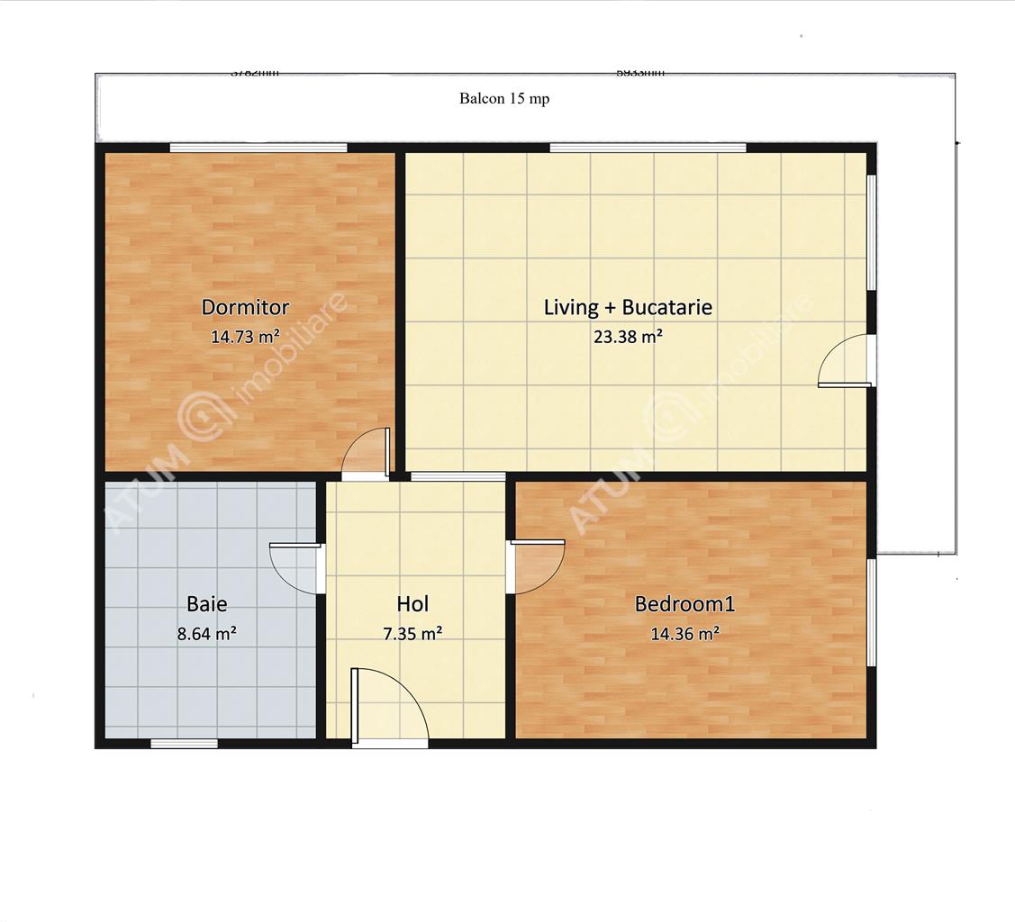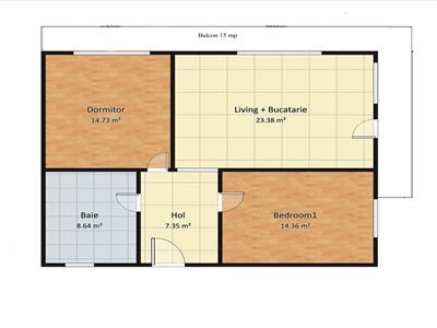 • Balcon generos de aproximativ 15 mp, cu acces atat din living, cat si din dormitor.
