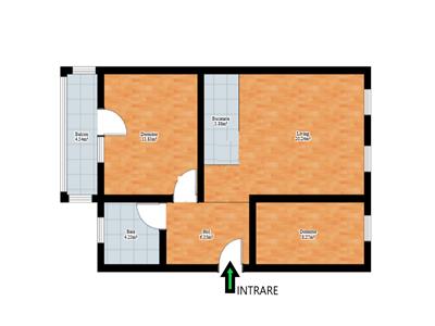 Apartamentul este singur pe palier si are suprafata utila de 65 de mp desfasurati pe hol acces, dormitor matrimonial, dormitor, living cu bucatarie open space si baie. Separat de suprafata utila, apartamentul dispune de balcon unde este amplasata centrala.