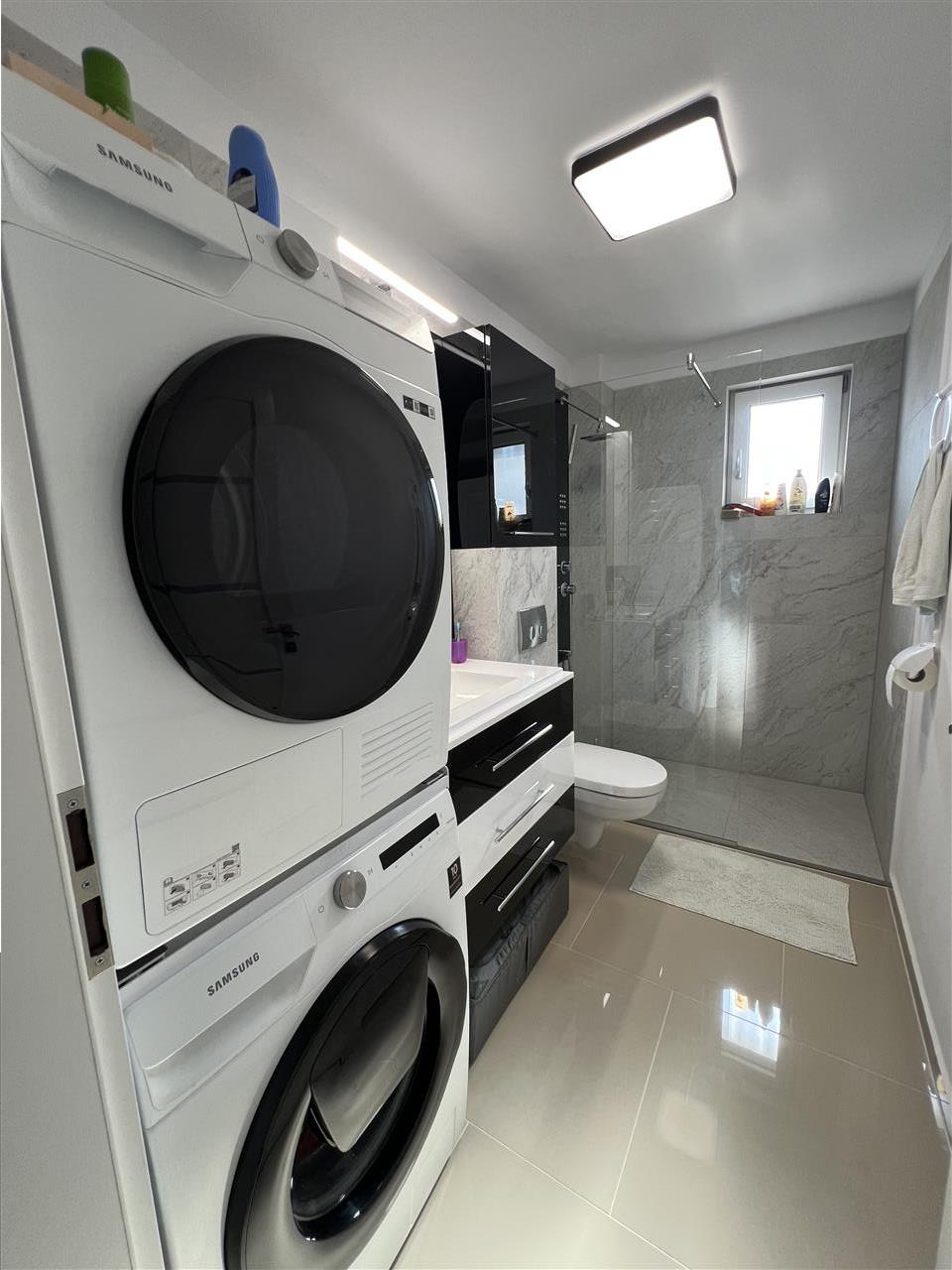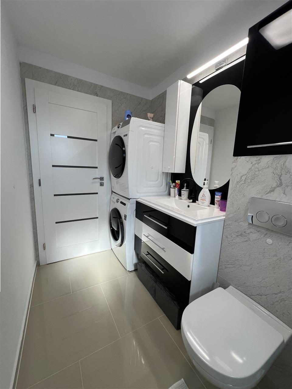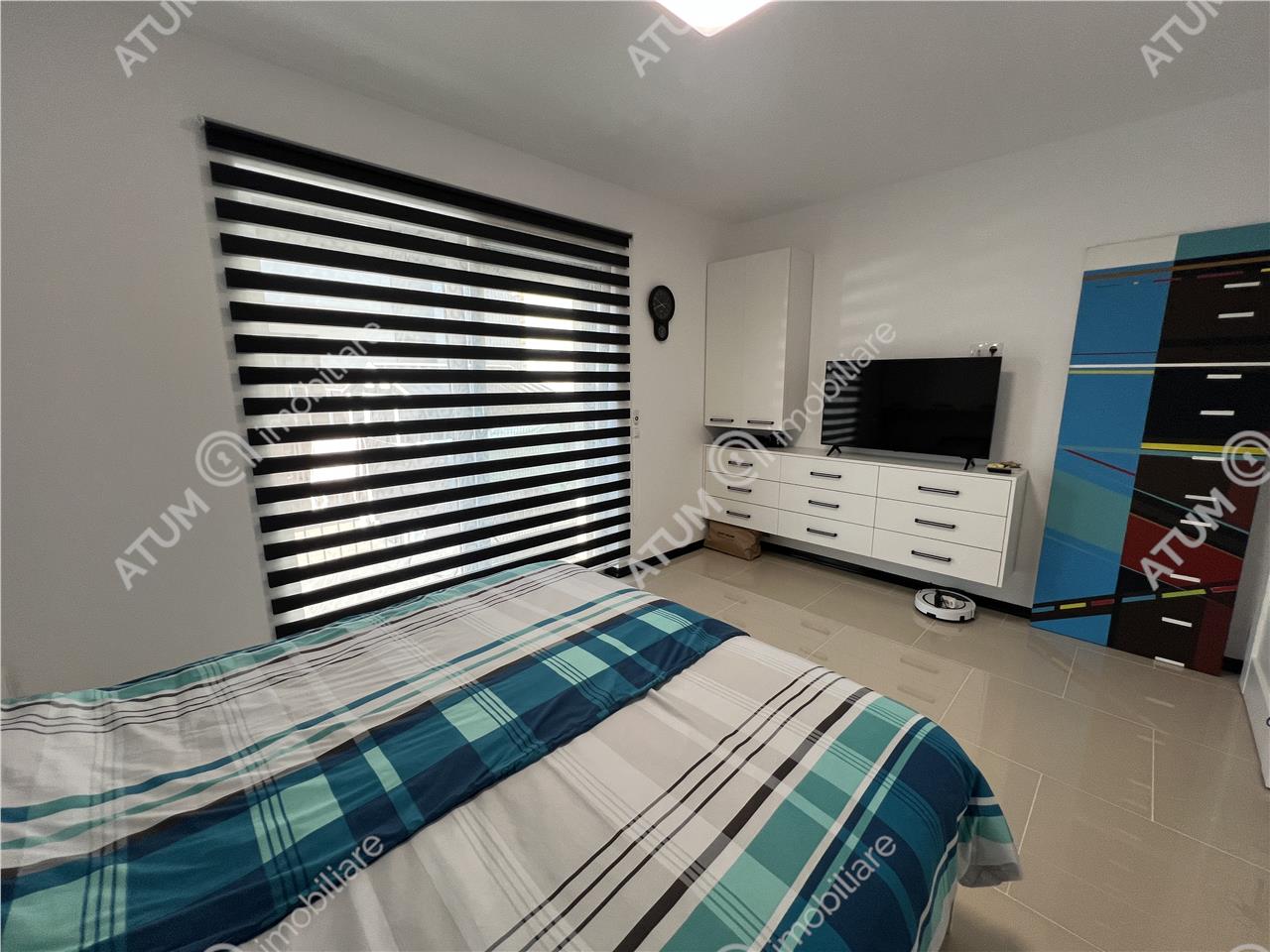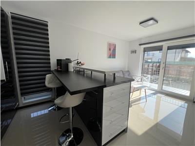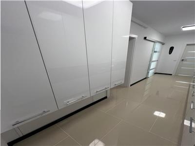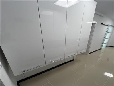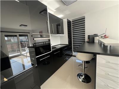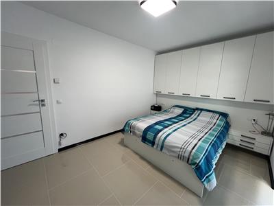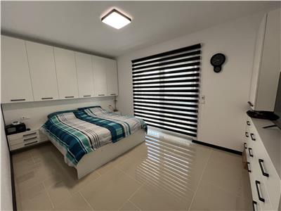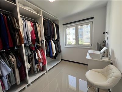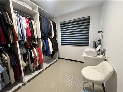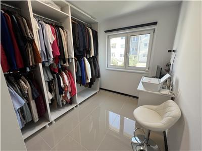 Apartamentul se preda complet mobilat si utilat cu mobilier de bucatarie realizat pe comanda din MDF infoliat si electrocasnice incastrate ( plita electrica, frigider, masina de spalat vase, cuptor electric, frigider, toate acestea sunt smart si pot fi actionate de la distanta ), camera de zi amenajata cu canapea, TV smart si mobilier specific de living, dormitorul matrimonial amenajat cu pat si spatii de depozitare incastrate in structura patului, diverse corpuri de depozitare si un TV smart, dormitorul secundar amenajat ca si dressing, baia amenajata modern cu obiecte sanitare marca Villeroy&Boch si electrocasnice precum masina de spalat rufe si uscator ambele marca Samsung si acestea de asemena pot fi actionate de la distanta. Holul de acces este amenajat cu o zona de primire dotata cu pantofar si cuier, un dressing generos cu multiple spatii destinate depozitarii.