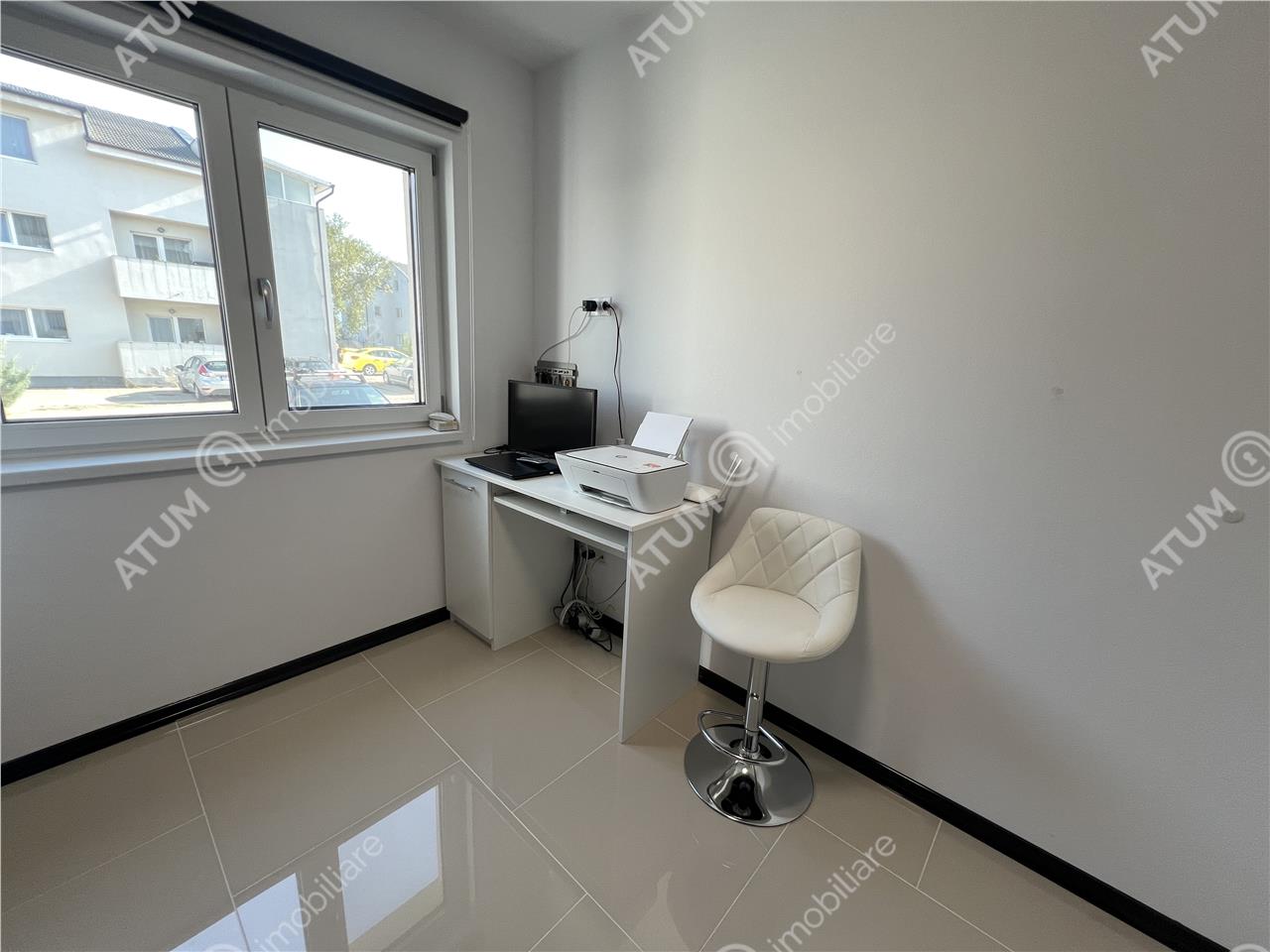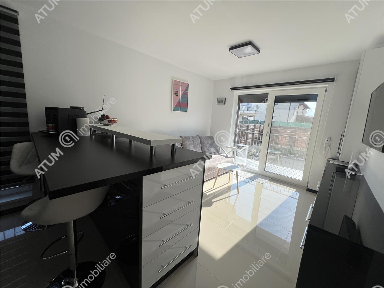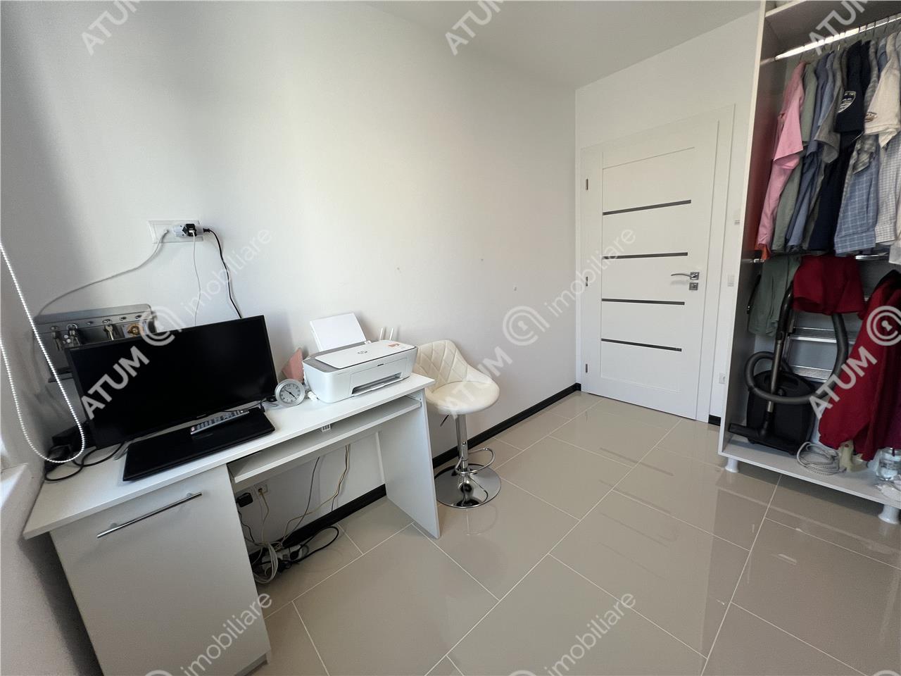 Apartamentul se preda complet mobilat si utilat cu mobilier de bucatarie realizat pe comanda din MDF infoliat si electrocasnice incastrate ( plita electrica, frigider, masina de spalat vase, cuptor electric, frigider, toate acestea sunt smart si pot fi actionate de la distanta ), camera de zi amenajata cu canapea, TV smart si mobilier specific de living, dormitorul matrimonial amenajat cu pat si spatii de depozitare incastrate in structura patului, diverse corpuri de depozitare si un TV smart, dormitorul secundar amenajat ca si dressing, baia amenajata modern cu obiecte sanitare marca Villeroy&Boch si electrocasnice precum masina de spalat rufe si uscator ambele marca Samsung si acestea de asemena pot fi actionate de la distanta. Holul de acces este amenajat cu o zona de primire dotata cu pantofar si cuier, un dressing generos cu multiple spatii destinate depozitarii.