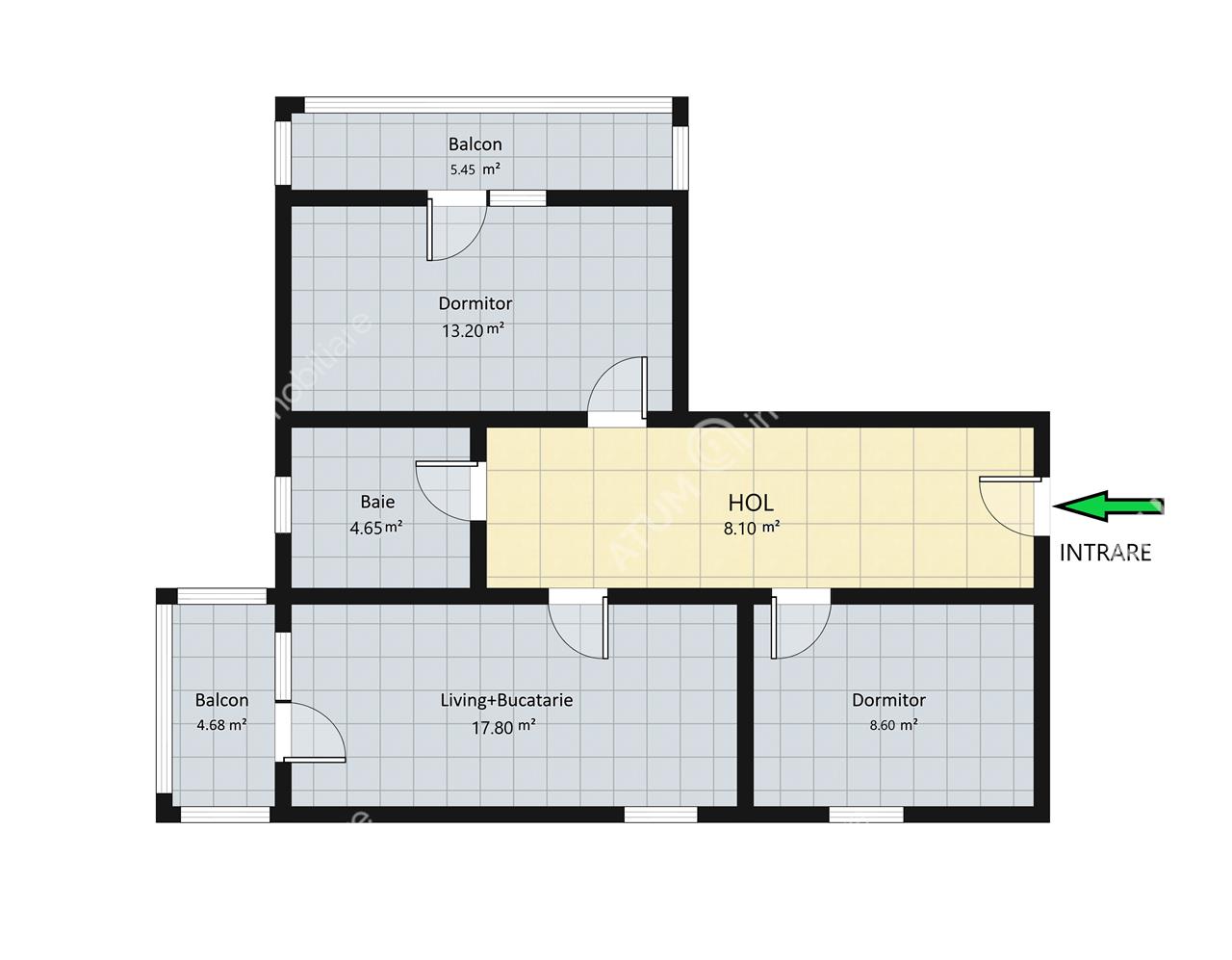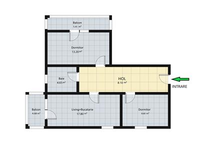Separat de suprafata utila, apartamentul dispune si de 2 balcoane, unul de 5,45 mp in care accesul se face din dormitorul matrimonial iar al doilea de 4.60 mp in care accesul se face din camera de zi.