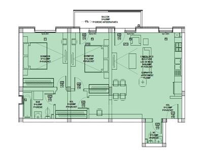 Separat de suprafata utila apartamentul dispune si de un balcon 6,80 mp in care accesul se face atat din camera de zi cat si dintr-un dormitor.j