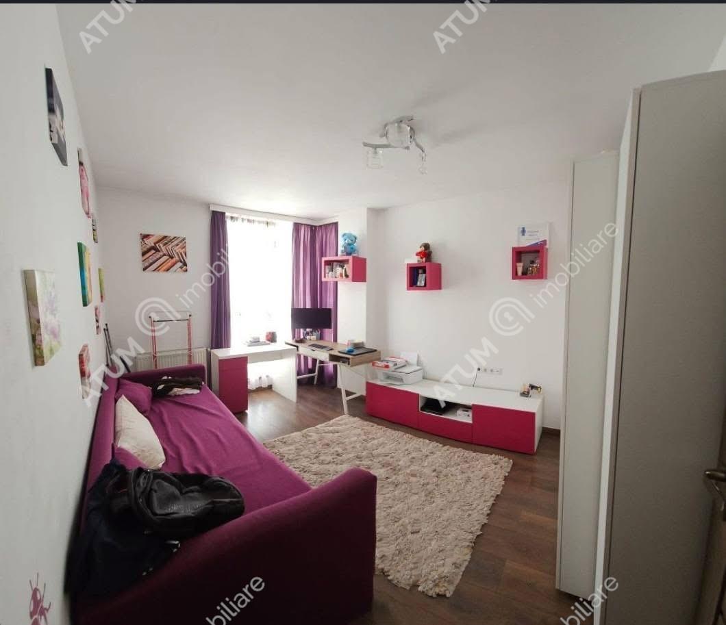 Locuinta este complet mobilata si utilata, si dispune de finisaje moderne precum gresie, faianta si parchet, geamuri termopan cu tamplarie PVC, aer conditionat, centrala termica, usa metalica la intrare.