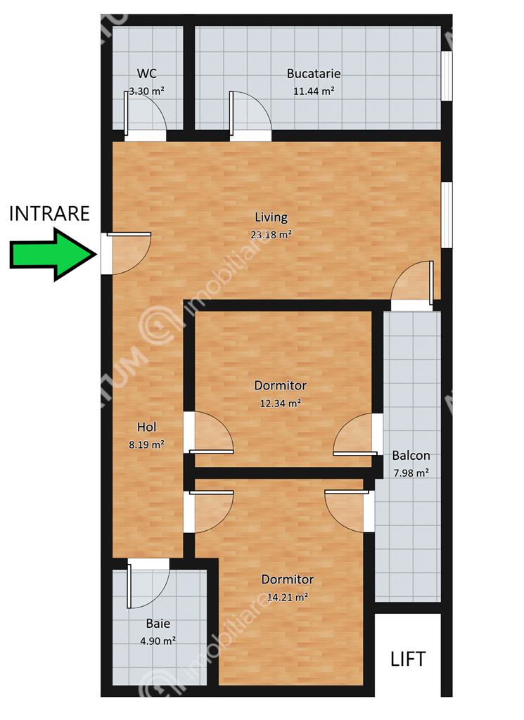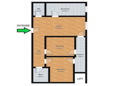 Separat de suprafata utila acesta detine si un balcon de 8 mp in care accesul se face din toate cele 3 camere (dormitoare si living).