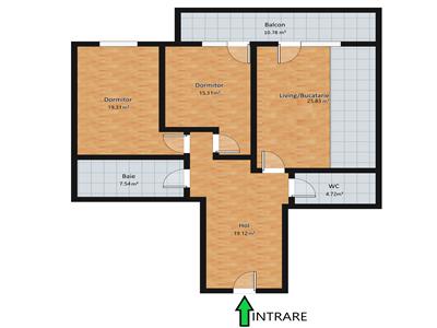 Apartamentul are suprafata utila de 92 mp, acesta fiind compus din: camera de zi unde poate fi amenajat si un dinning pentru mesele in familie, dormitoare generoase care permite si amenajarea unei zone de studiu, bucataria separata cu locul de luat masa, baia si wc de serviciu, holul spatios care permite amenajarea zonei de primire cu pantofar si cuier.