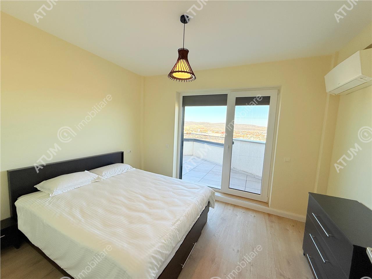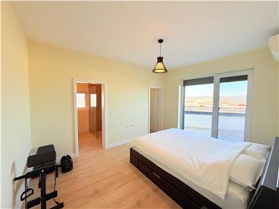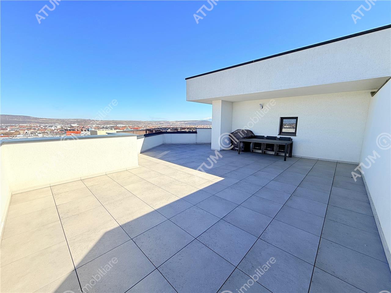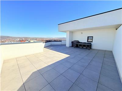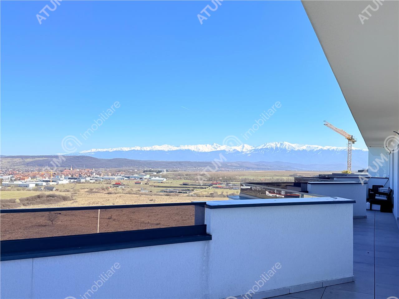Va propunem spre vanzare un apartament tip penthouse situat in unul dintre cele mai cautate ansambluri rezidentiale din Sibiu, in zona Mihai Viteazu, amplasat la etajul 10 al unui imobil modern construit in anul 2024, care ofera un standard ridicat de confort, siguranta si facilitati premium. Pozitionarea la ultimul nivel asigura o priveliste spectaculoasa asupra orasului si catre Muntii Fagaras, precum si un grad ridicat de intimitate si lumina naturala pe tot parcursul zilei, datorita orientarii est-vest.