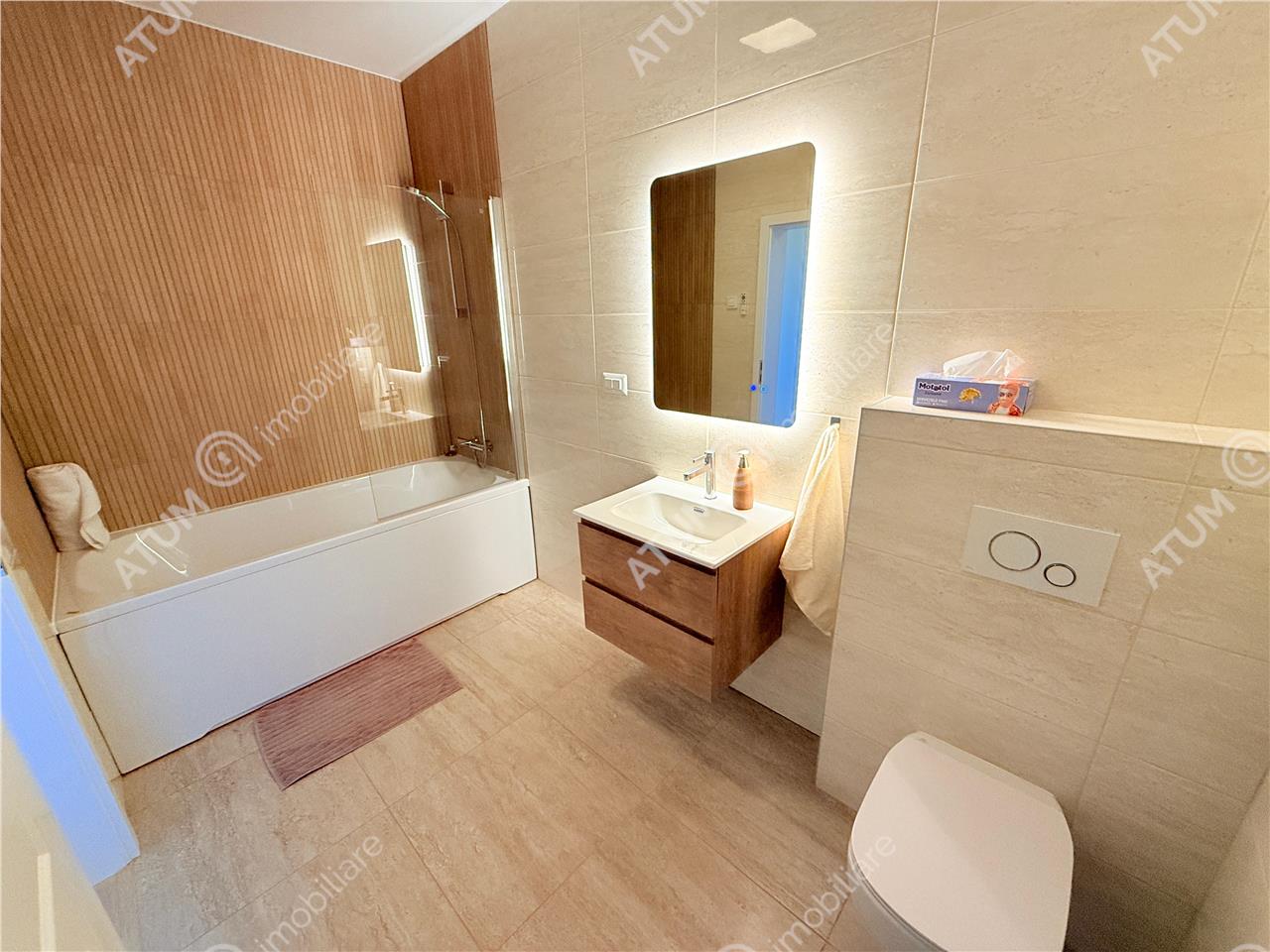 Apartamentul se vinde complet mobilat si utilat, cu mobilier realizat la comanda din MDF si electrocasnice incorporate marca Bosch, inclusiv masina de spalat vase, plita electrica, cuptor electric, hota, frigider, masina de spalat rufe, uscator de rufe si televizoare, oferind astfel un nivel ridicat de confort si posibilitatea de mutare imediata fara investitii suplimentare.