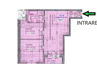 Separat de suprafata utila a apartamentului acesta detine si 2 balcoane, unul de 3.60 mp in care accesul se face din camera de zi si un al doilea cu acces dintr-un dormitor.