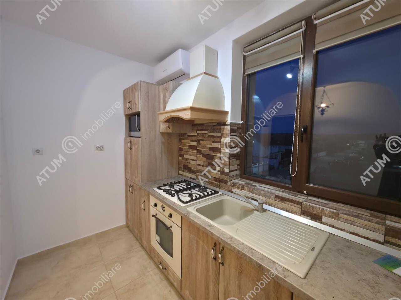 Locuinta se preda partial mobilata, cu mobilier de bucatarie modern realizat pe comanda cu electrocasnice incastrate precum: plita pe gaz, hota, cuptor electric, cuptor cu microunde, baie cu obiecte sanitare, masina de spalat.