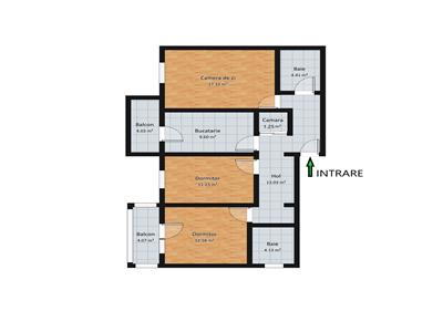 Separat de suprafata utila apartamentul dispune de 2 balcoane de 4 mp fiecare, intr-un balcon se face accesul din bucatarie iar in al doilea care este inchis cu tamplarie PVC se face accesul din dormitorul matrimonial.