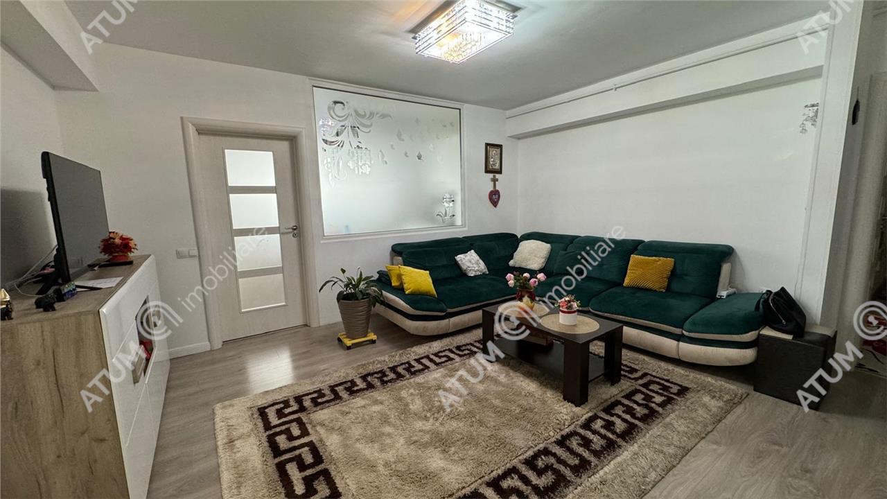 Apartament cu 3 camere de vanzare in Selimbar zona Doamna Stanca, ce dispune de o suprafata de 123 mp, 102 mp utili si 21,5 balcoane, situat la etajul intermediar 3 al unui imobil cu 5 etaje prevazut cu lift si interfon la intrare.