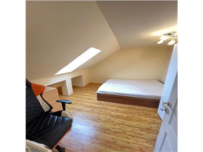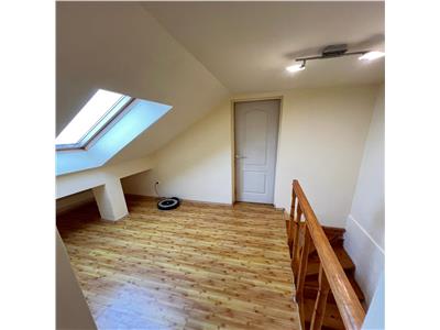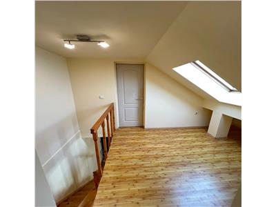 Apartamentul este dotat cu usa de acces din metal, parchet laminat, gresie si faianta, baie cu cabina de dus si geam de aerisire, tamplarie PVC cu geamuri termopan, centrala termica proprie de apartament, calorifere si usi interioare din lemn, iar nivelul superior beneficiaza de geamuri de tip Velux.