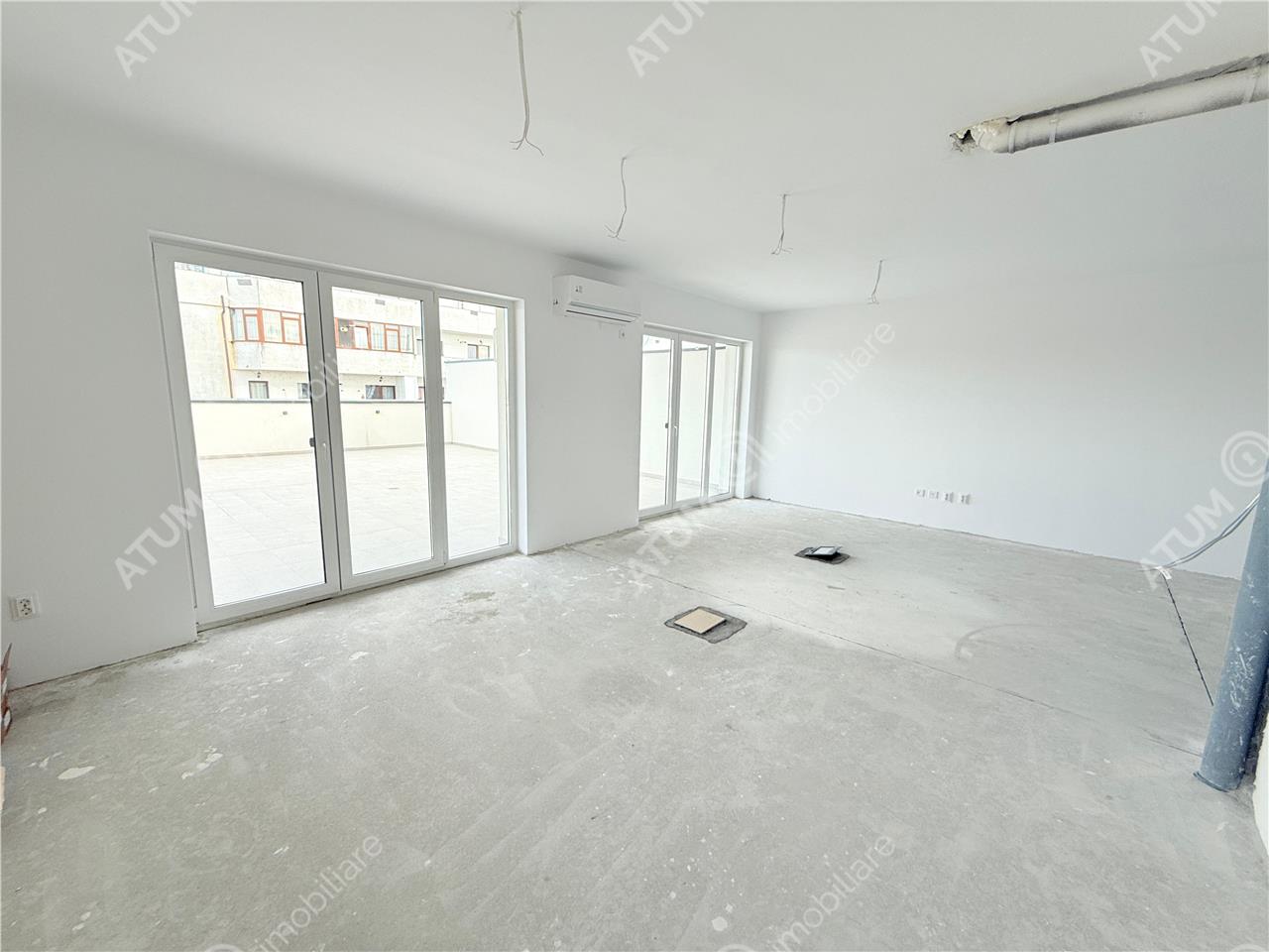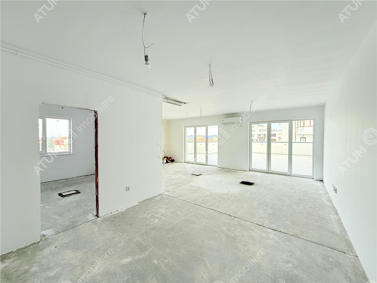 Apartament tip penthouse de vanzare in Selimbar, zona Doamna Stanca, situat la etajul 7 al unui imobil finalizat in anul 2025. Apartamentul este in curs de amenajare interioara si urmeaza a fi predat la stadiul de cheie, cu toate finisajele incluse, respectiv montarea parchetului, usilor de interior, gresiei, faiantei si obiectelor sanitare.