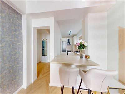 Apartamentul este complet mobilat si utilat cu mobilier de calitate facut pe comanda din MDF si electrocasnice incorporate ( cuptor electric, plita electrica, hota, masina de spalat vase, frigider, masina de spalat rufe, televizoare ).