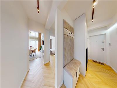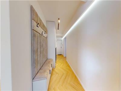 Apartamentul dispune de multiple spatii pentru depozitare mascate si incorporate. Pe hol se afla un cuier si un spatiu generos pentru depozitare, ambele incastrate in perete.