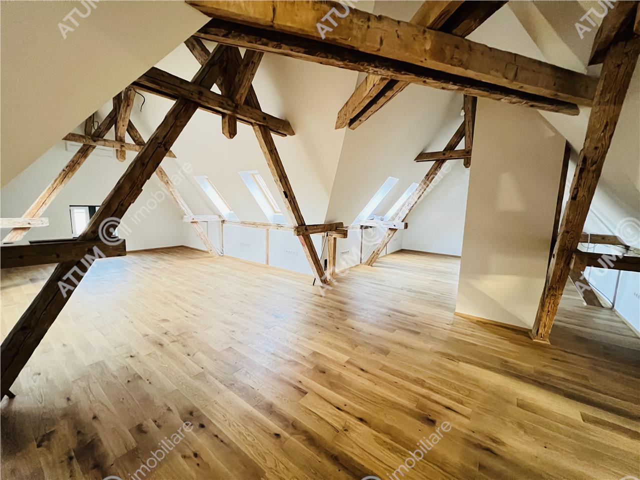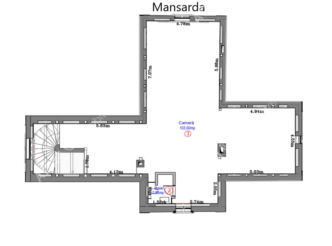 MANSARDA, nu ar mai fi mansarda, dacă nu ar respira un aer ușor diferit fata de restul etajelor! Detine o suprafață utila de 105.85 mp, compusa din camera de 103 mp si grup sanitar de 2.85 mp.