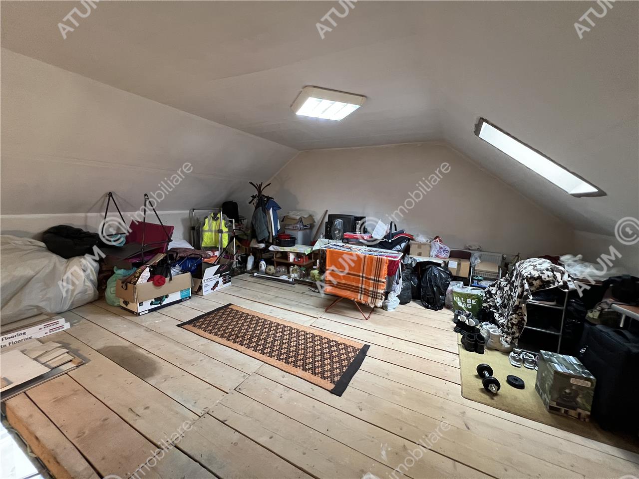 Din holul etajului se face urcarea catre mansarda, care este in prezent folosita ca spatiu de depozitare, insa beneficiaza de utilitati trase, apa si canalizare, oferind posibilitatea amenajarii unei bai si a uneia sau a doua camere, in functie de necesitati.