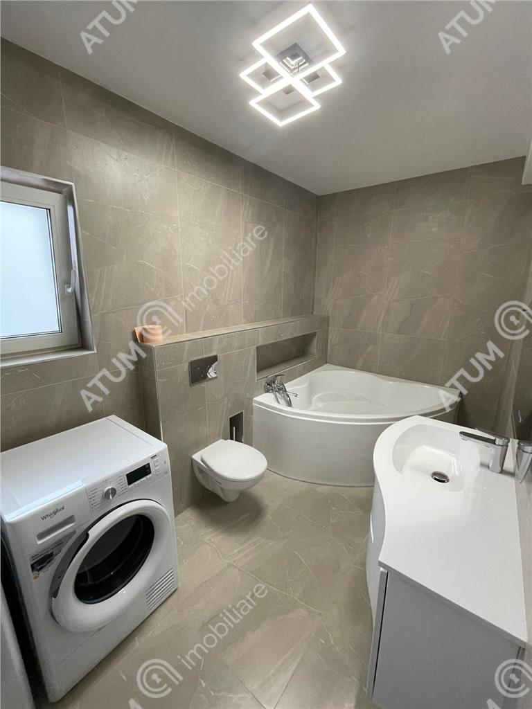 Proprietatea se inchiriaza complet mobilata si utilata cu obiecte sanitare suspendate, electrocasnice incorporate (frigider, masina de spalat vase, hota, cuptor electric, plita electrica). Aditional exista si masina de spalat rufe cu uscator si televizor Smart.