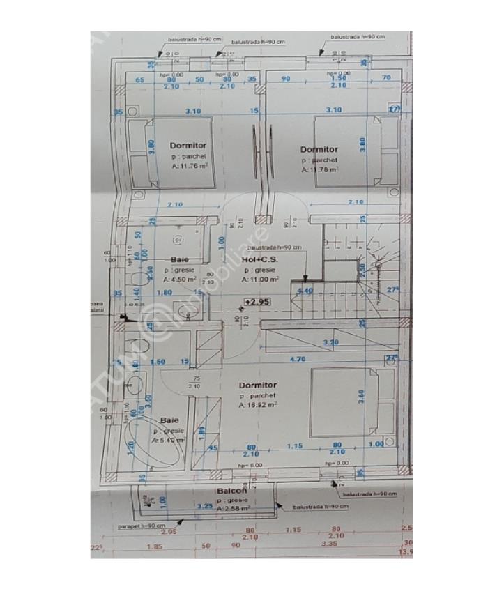 Terenul are suprafata de 300 mp, amprenta casei este de 70 de mp si are curte libera de 230 mp, cu o deschidere de 30 de m si 2 fronturi stradale.
