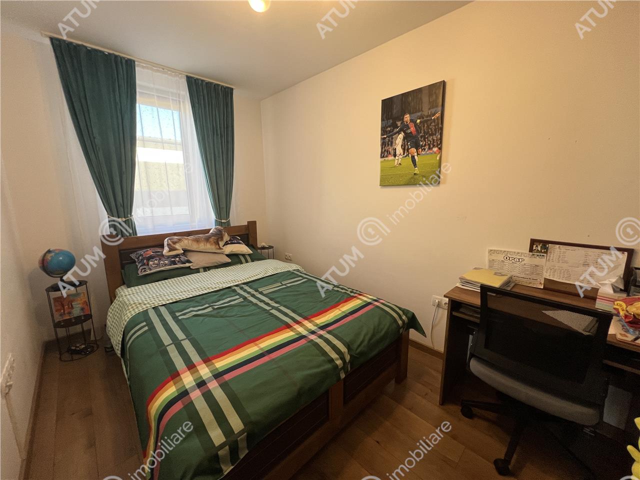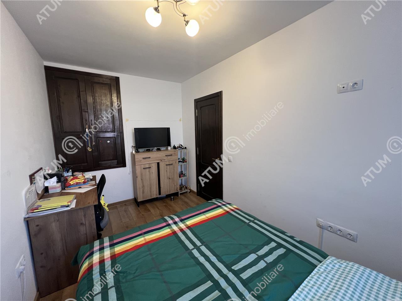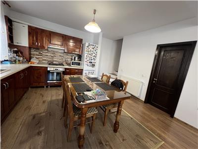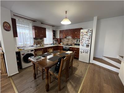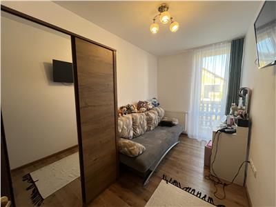 Din punct de vedere al mobilierului casa poate fi predata atat nemobilata si cat si complet mobilata si include: mobilier de bucatarie realizata pe comanda din lemn masiv de brad vopsit in culoarea ciresului si electrocasnice incastrate ( plita pe gaz, cuptor electric, hota, frigider si masina de spalat rufe ), camera de zi care include canapea si mobilier de living cu multiple spatii de depozitare, TV smart, 2 dintre dormitoare complet amenajate cu mobilier realizat pe comanda din lemn masiv de brad iar al treilea amenajat cu canapea, baia de la etaj complet echipata cu mobilierul specific si obiecte sanitare.